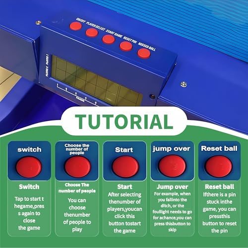 Gioco di bowling elettronico: Caratteristiche ritorno automatico della palla e punteggio, alimentato a batteria per un facile utilizzo. Include 6 perni di plastica e 2 palline, realizzati con materiali atossici e sicuri per i bambini. Arco di ritorno automatico della palla: i pin si ripristinano automaticamente dopo essere stati colpiti, con suoni simulati per un'esperienza di gioco realistica e conveniente. Dispositivo di punteggio elettronico a LED: supporta uno o due giocatori, registra automaticamente i punteggi per migliorare il divertimento competitivo e l'interazione durante il gioco. Intrattenimento genitore-figlio: promuove il legame attraverso un gioco divertente, competitivo e abile, favorendo relazioni familiari armoniose e gioia. Facile da configurare: design portatile per uso domestico, installazione rapida, superfici lisce e stoccaggio pieghevole per risparmiare spazio quando non in uso.