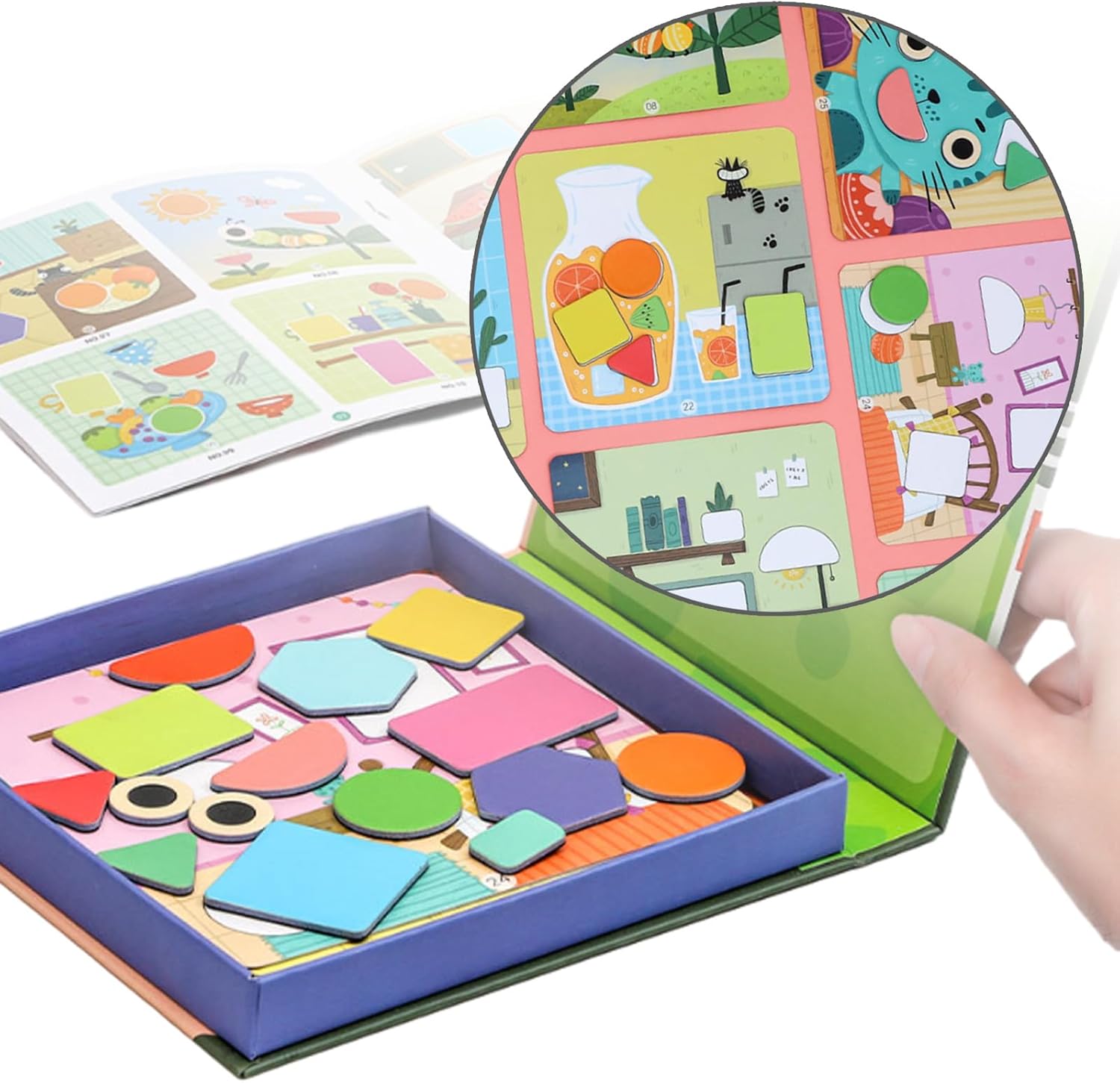 Lascia che il tuo bambino esplori nuove possibilità e divertiti mentre impara con questi puzzle magnetici realizzati con materiali. Adatto a bambini di età superiore ai 3 anni, in particolare quelli che sono interessati a forme e colori, e coloro i cui genitori o educatori vogliono fornire un'istruzione precoce. I bambini possono giocare con genitori, amici o altri bambini, migliorare le abilità sociali e la consapevolezza della cooperazione e fornire opportunità per l'interazione genitore-figlio. per uso domestico, asilo nido o classe. Ideale per sviluppare capacità motorie e coordinazione occhio-mano, oltre a incoraggiare l'immaginazione e l'espressione di sé.
