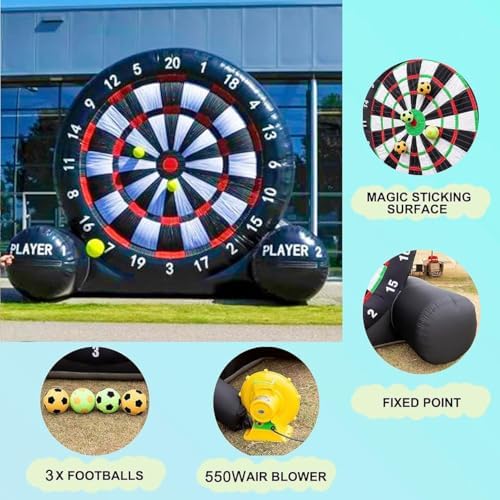 Freccette gonfiabili da calcio con presa superiore: elimina la frustrazione delle freccette che cadono dal bersaglio. Questo bersaglio per freccette offre una presa e un'aderenza migliorate, consentendo anche ai giocatori più giovani di rimuovere facilmente le freccette senza fatica. Freccette gonfiabili da calcio - Costruzione durevole: il nostro bersaglio gonfiabile per freccette è realizzato in tessuto Oxford di alta qualità, che offre un'eccezionale resistenza all'usura e previene l'accumulo di elettricità statica. Le doppie cuciture rinforzate su tutte le cuciture aumentano la tenuta all'aria e la durata complessiva, mentre il design triangolare del telaio migliora la stabilità rispetto ai bersagli per freccette standard. Freccette da calcio gonfiabili: montaggio rapido: gonfia e monta il bersaglio gonfiabile da calcio e freccette in meno di 2 minuti. Il suo design intuitivo consente un gonfiaggio e uno sgonfiaggio rapidi, consentendo uno stoccaggio compatto e un facile trasporto. Calcio e freccette gonfiabili: divertimento senza fine all'aperto: vivi un gioco emozionante, perfetto per diverse attività come calcio balilla, palla lunga, freccette e golf. Questo bersaglio gonfiabile per freccette è un regalo ideale, che garantisce ore di divertimento. Pacchetto completo per freccette da calcio gonfiabili: ogni set include un grande bersaglio gonfiabile per freccette da calcio, cinque palloni da calcio e un soffiatore per un montaggio semplice. Il nostro team di assistenza clienti dedicato è disponibile 24 ore su 24 per rispondere a qualsiasi domanda o dubbio sul tuo acquisto.