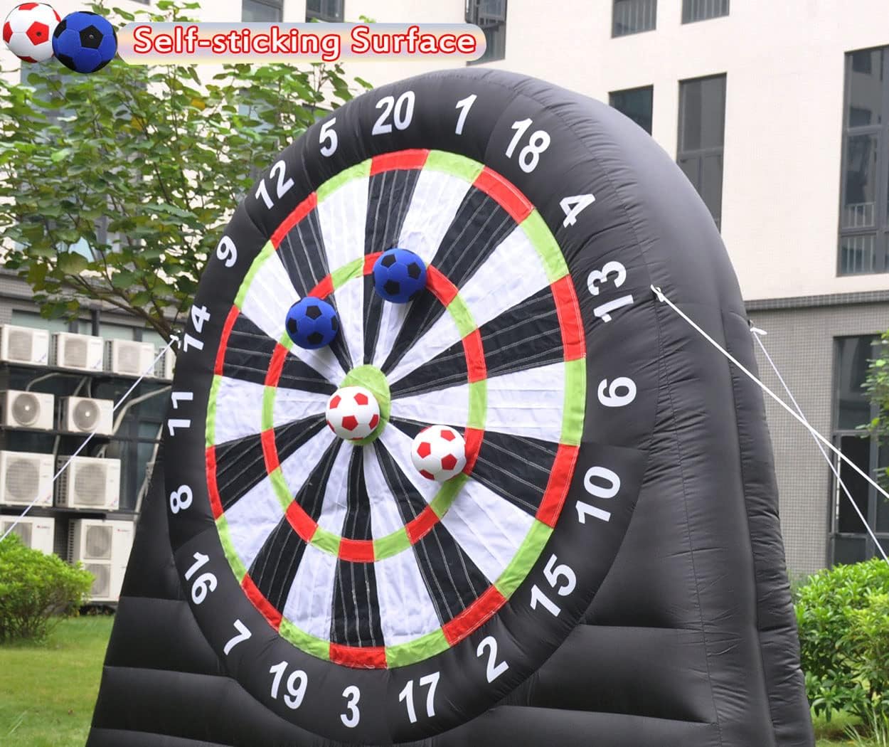 Freccette da calcio gonfiabili: montaggio rapido e facile da riporre: gonfia le tue freccette da calcio giganti in soli 2 minuti e mantienile gonfie per tutta la durata dell'evento tenendole collegate. Ricordati di chiudere la cerniera prima di gonfiarle! Dopo la partita, basta aprirla per sgonfiarle e riporle con facilità. Freccette gonfiabili da calcio: comode e portatili: il nostro bersaglio è realizzato in tessuto Oxford leggero e resistente, e misura 3 metri per 3 metri (larghezza x altezza). È facile da trasportare e perfetto per riporre o trasportare oggetti senza problemi. Freccette gonfiabili da calcio Caratteristiche innovative: combina l'emozione del calcio e delle freccette in un unico gioco emozionante. Questo bersaglio gonfiabile di grandi dimensioni è progettato per giocatori di tutte le età, con una superficie autoadesiva per un gioco sicuro e divertente. Calcia le morbide palle da calcio contro l'imponente bersaglio in velcro alto 3 metri per un divertimento senza fine e creatività nel segnare. Freccette da calcio gonfiabili Applicazioni versatili: perfette per gli appassionati di calcio e adatte a diverse occasioni, tra cui attività di noleggio, scuole, gite in spiaggia, campi estivi, eventi aziendali, riunioni di comunità, feste in giardino e momenti di qualità con la famiglia e gli amici per incoraggiare uno stile di vita attivo e il lavoro di squadra. Specifiche del prodotto per freccette da calcio gonfiabili: si prega di notare che i prodotti internazionali hanno termini specifici e possono variare rispetto agli articoli locali, tra cui vestibilità, fasce d'età, istruzioni in lingua ed etichettatura.