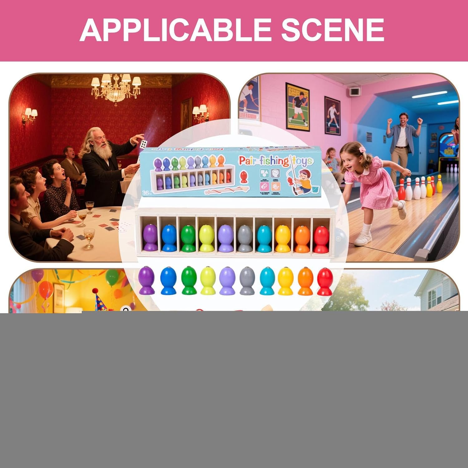 Pratica di abbinamento dei colori: pratica la corrispondenza dei colori e allena la differenziazione dei colori con un gameplay magnetico coinvolgente, che favorisce l'apprendimento dello sviluppo per tutte le età Miglioramento delle abilità cognitive: questo gioco di pesca magnetico supporta la memoria e la concentrazione, favorisce lo sviluppo della capacità di attenzione per una migliore durata della messa a fuoco e costruisce la resistenza mentale attraverso esperienze di gioco coinvolgenti, progettato per affascinare le giovani menti naturalmente Destrezza e precisione di attenzione: rafforza le capacità motorie fini e aiuta lo sviluppo della coordinazione occhio-mano con attività che richiedono movimenti accurati, rendendolo ideale per migliorare la destrezza manuale in un ambiente di apprendimento giocoso Materiale adatto ai bambini: realizzato in legno sicuro, questo gioco di pesca magnetico dà la priorità alla durata e alla sicurezza con finitura liscia del bordo, assicurando divertimento a prova di preoccupazioni per i bambini di tutte le età Versatile gioco di gruppo: ideale per riunioni di famiglia, questo gioco di pesca magnetico aiuta il divertimento multi-età e rafforza le relazioni offrendo un'attività condivisa che combina divertimento con connessioni significative