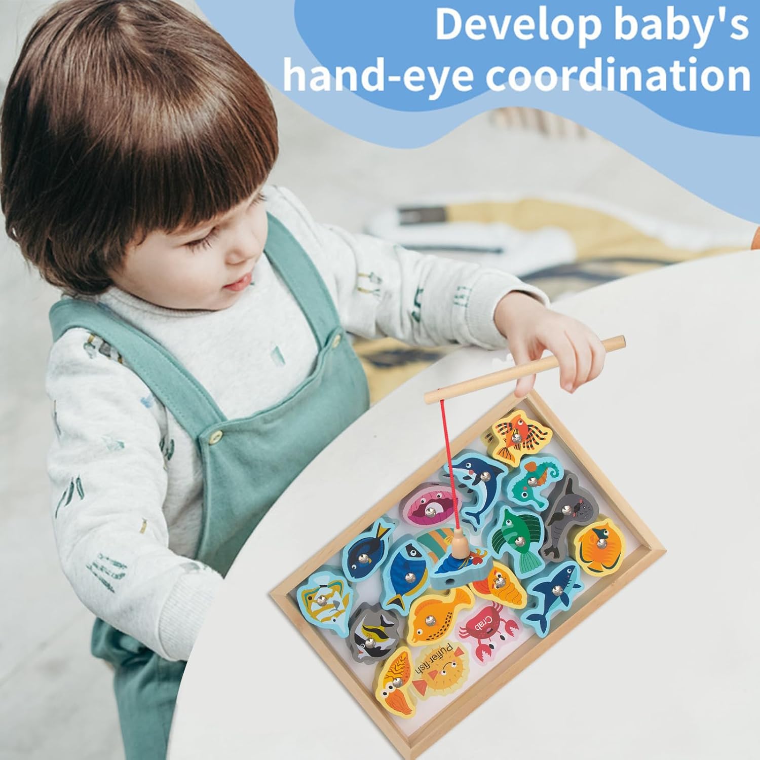 Sviluppo delle abilità: questo giocattolo da pesca in legno stimola la creatività dei bambini, migliorando la coordinazione occhio-mano, le abilità pratiche, le capacità motorie e il pensiero. È uno strumento perfetto per sviluppare abilità e offre un'esperienza educativa quando i bambini imparano a conoscere pesci, colori, forme e numeri diversi. Sicuro e innocuo: goditi infinite ore di gioco sicuro con i nostri giocattoli da pesca in legno. È realizzato con materiali ecologici e adatti ai bambini, non contiene bordi taglienti ed è sicuro e innocuo per i bambini di tutte le età. Regalo pratico: lascia che il tuo bambino si diverta ad imparare e migliorare le sue capacità motorie, creatività e coordinazione occhio-mano con questo esclusivo giocattolo da pesca in legno. Perfetto per Pasqua, Natale o compleanno: una fantastica opzione regalo per le ragazze che amano la pesca. Riconoscimento del colore e della forma: i nostri giocattoli da pesca sono progettati per migliorare le capacità di riconoscimento del colore e della forma dei bambini. Il design realistico e i colori vivaci lo rendono un giocattolo prescolare indispensabile. Gioco di pesca: il nostro giocattolo da pesca offre un design unico 2 in 1 che combina giocattoli da pesca e perline in uno. Grazie al design magnetico, i bambini adoreranno catturare i pesci colorati e le perline migliorando così le loro capacità motorie e la coordinazione occhio-mano.