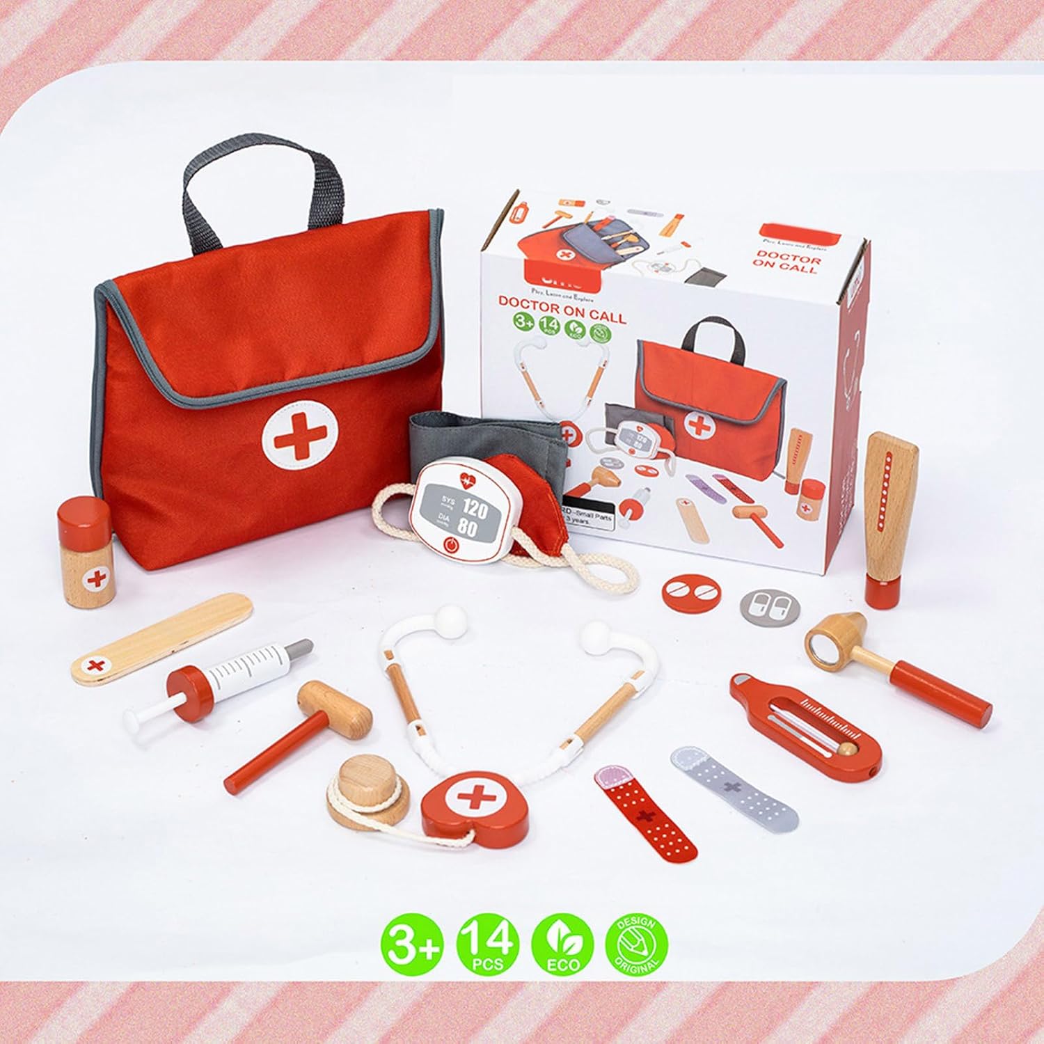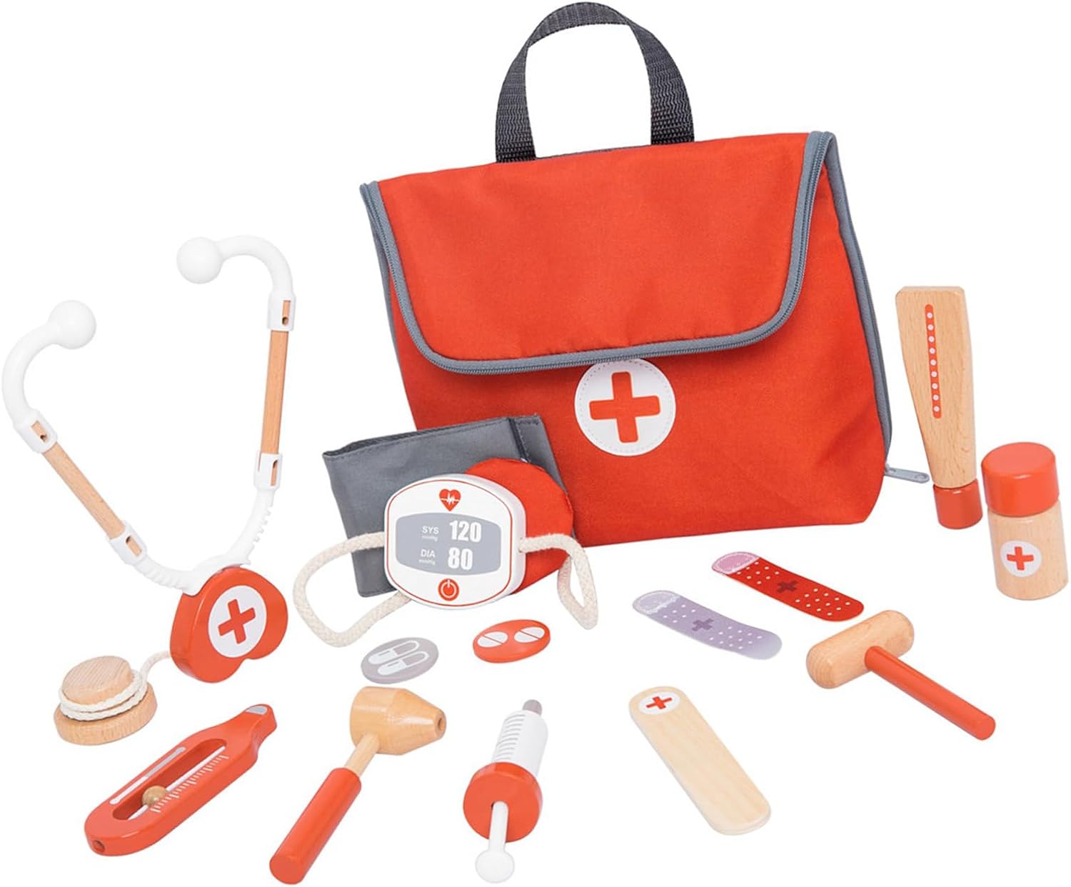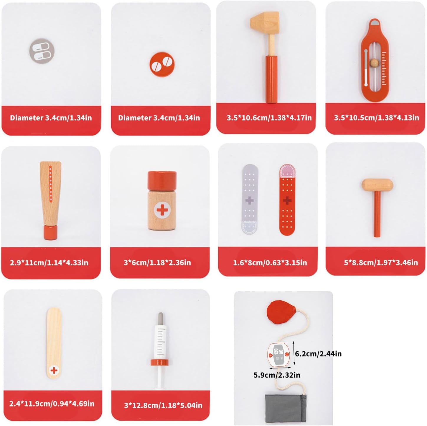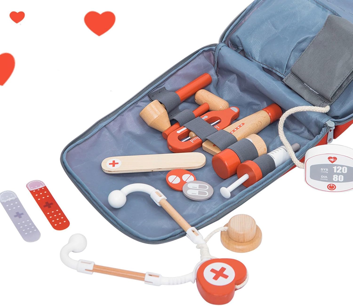 Set di giochi da medico per bambini, tra cui molteplici accessori per bambini, neonati e bambini piccoli Per bambini dai 3 anni in su, questo set da gioco incoraggia il gioco di ruolo e stimola lo sviluppo cognitivo Prepara il tuo bambino per giocare e imparare con il nostro set da gioco in legno Doctor Legno naturale con bordi arrotondati per evitare lesioni e garantire un gioco sicuro Gioco fantasioso: lascia che la tua ragazza giochi l'immaginazione e goditi poche ore di gioco divertente con set completo di strumenti medici appositamente progettati per il tuo bambino