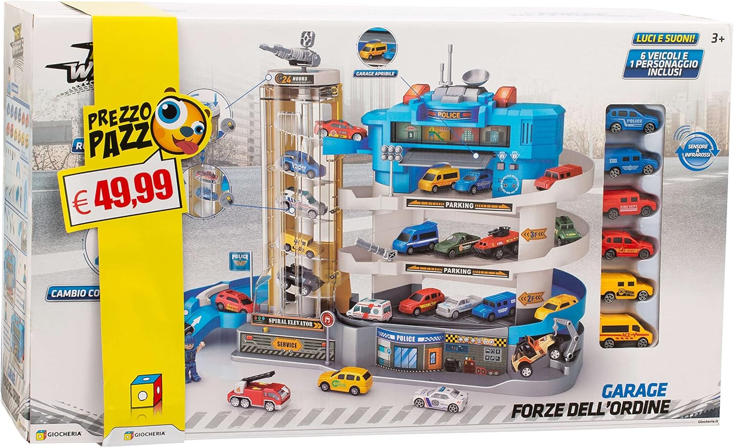 Stazione di Polizia a Tre Piani: Goditi il divertimento con questa grande stazione di polizia a tre piani, completa di 12 auto incluse Ascensore Manuale ed Elettronico: L'ascensore può essere utilizzato sia manualmente che elettronicamente, offrendo un'esperienza di gioco completa Sensore di Movimento Attivato: Quando un'auto passa davanti al garage superiore, si attivano luci e suoni, aggiungendo un tocco di realismo al gioco Materiale di Qualità: Costruito con materiali di alta qualità, questo giocattolo è progettato per durare nel tempo e offrire ore di divertimento Perfetto per Bambini dai 5 ai 8 Anni: Questo giocattolo è ideale per i bambini di questa fascia di età, stimolando la loro creatività e immaginazione durante il gioco