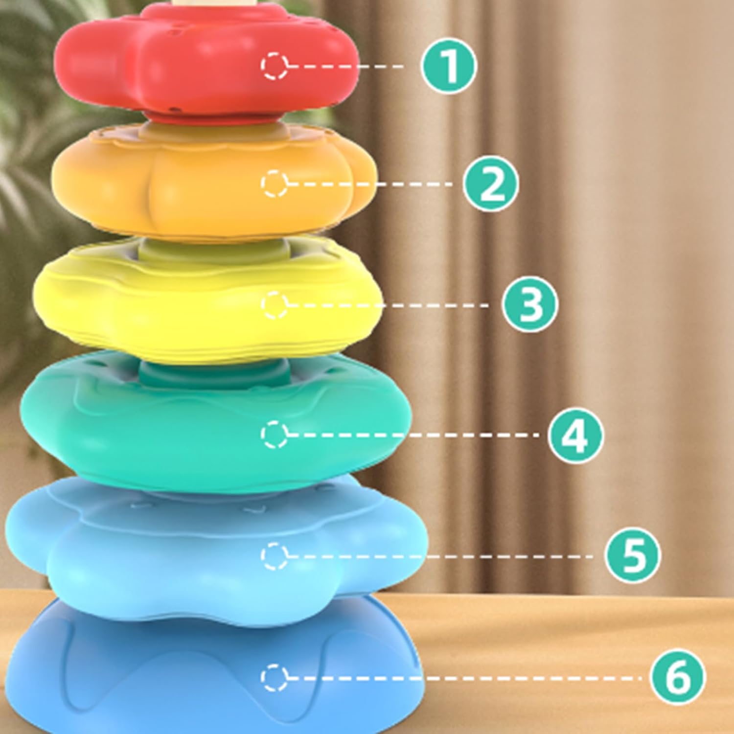 Materiale Forte: Progettato con anelli levigati e struttura sicura per bambini, utilizza ABS di qualità come materiale longevo per garantire prestazioni affidabili durante attività di gioco attivo e utilizzo prolungato Divertimento Girevole Coinvolgente: Favorisce la consapevolezza spaziale e la coordinazione occhio-mano grazie a meccaniche di gioco rotanti che un'esperienza immersiva, supportando lo sviluppo cognitivo in modo giocoso. Destrezza Manuale Migliorata: Favorisce lo sviluppo delle abilità motorie fini unendo esercizi di flessibilità delle dita e crescita della pazienza in un'esperienza di gioco piacevole Regalo Pratico: Giocattolo impilabile ad anelli educativo e divertente, ideale per bambini piccoli che imparano giocando. Sviluppa abilità motorie e creatività, scelta perfetta come regalo per varie occasioni Stimolazione Visiva: Combina multicolore brillanti per stimolare i sensi visivi, offrendo un modo interattivo di imparare i colori attraverso attività sensoriali di impilamento coinvolgenti