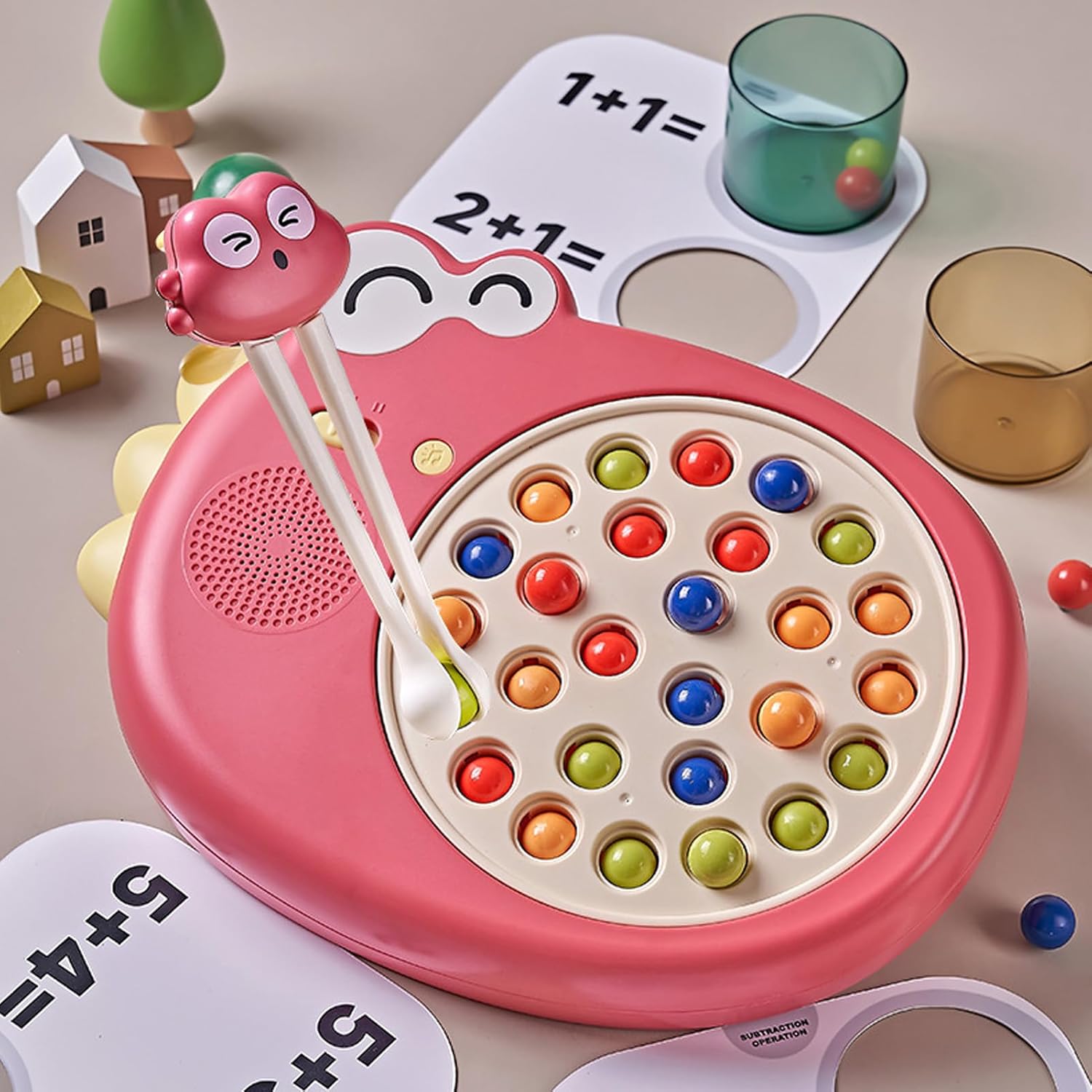 Materiale plastico eccellente: questo giocattolo per lo smistamento dei colori del gioco di perline da tavolo è realizzato in materiale plastico di eccellente qualità, robusto e resistente all'abrasione, non facile da danneggiare e ha una lunga durata. Supporto per la presa corretta: questo giocattolo con perline a Clamp/Holder per l'allenamento del cervello delle mani è specificamente progettato per aiutare nella presa giusta, guida le mani dei bambini a tenere correttamente le bacchette, favorendo buone abitudini che dureranno. Coinvolgente tema dei dinosauri: immergi il tuo bambino in un affascinante mondo di dinosauri che rende emozionante la pratica delle abilità con le bacchette! Il design vivace e giocoso incoraggia i più piccoli a esplorare e interagire, migliorando la loro esperienza di apprendimento in un ambiente visivamente stimolante. Facile da usare: progettato specificamente per i bambini piccoli, il giocattolo didattico per bambini con le bacchette è facile da usare e accessibile, rendendo l'apprendimento delle tecniche con le bacchette semplice e divertente. Il suo design incentrato sul bambino garantisce sicurezza e facilità d'uso, consentendo ai bambini di esercitarsi e affinare con sicurezza le proprie abilità. Imparare attraverso il gioco: questo addestratore di bacchette di dinosauro combina apprendimento e divertimento, consentendo ai bambini di sviluppare le proprie abilità divertendosi. La natura interattiva del gioco incoraggia i bambini a impegnarsi, rendendo loro più facile apprendere le complessità dell'uso delle bacchette senza frustrazione.