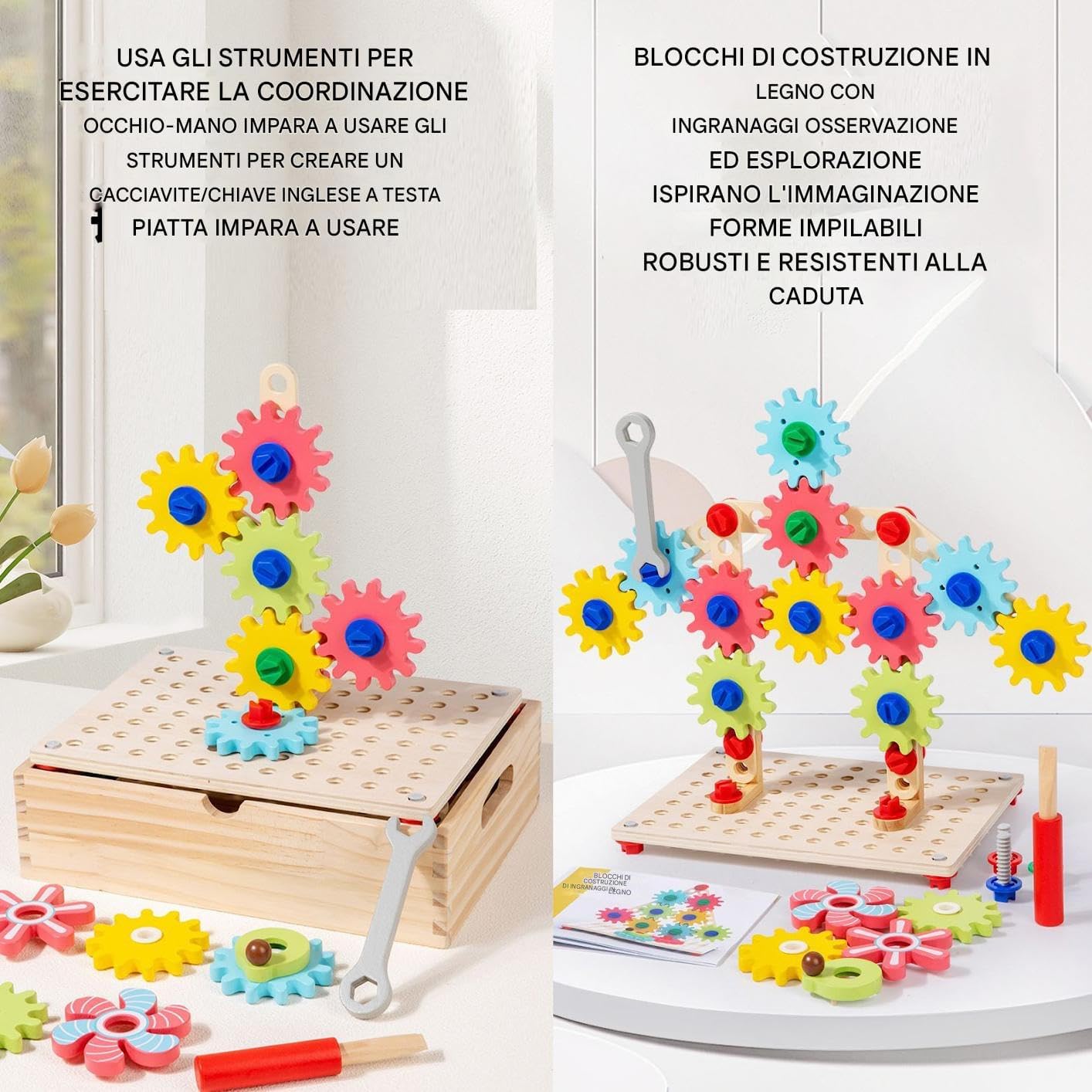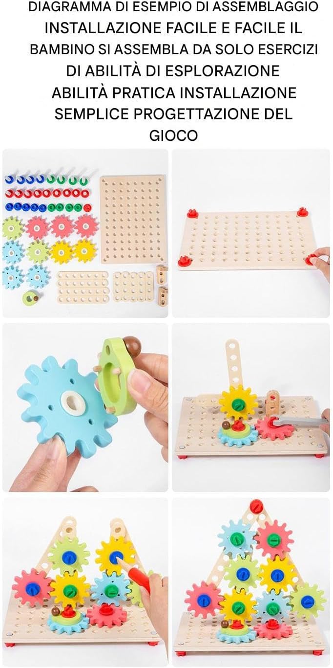 Meccanica Ingranaggi Coinvolgente:Migliora lo sviluppo del bambino integrando attività di rotazione degli ingranaggi che potenziano la coordinazione, il ragionamento logico e la percezione spaziale per esperienze di apprendimento. Montaggio Creativo:Immergiti in puzzle di ingranaggi con strutture lisce e arrotondate, dotate di funzioni anti-sgancio. Materiali adatti ai bambini e processi di colorazione sicuri stimolano l'apprendimento divertente. Abilità di Auto-Organizzazione: Promuove l'abitudine all'ordine attraverso un design strutturato che facilita la scoperta pratica del puzzle meccanico e semplifica il trasporto degli accessori indispensabili con efficienza Concentrazione e Coordinazione: Avanza nell'orientamento spaziale e nel coordinamento sensoriale risolvendo ingranaggi complessi, favorendo precisione mano-occhio e aumentando i tempi di concentrazione con sfide progressive strutturate Crescita Creatività Sistematica: Dadi sostituibili e ingranaggi diversificati abilitano più opzioni di montaggio, migliorando l'immaginazione spaziale mentre accendono la fascinazione per i sistemi meccanici, supportando lo sviluppo metodico della creatività