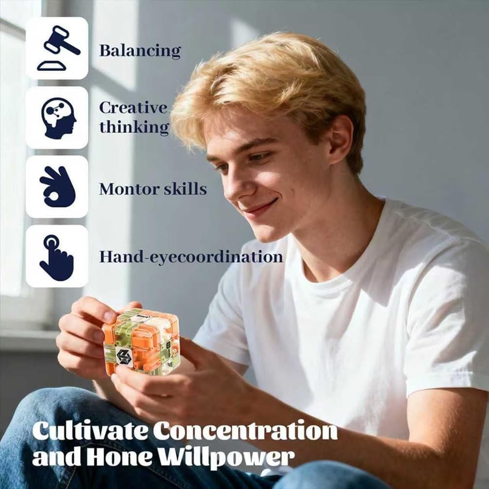 【Esperienza puzzle due in uno】: combina la classica azione di rotazione del cubo con un'avvincente sfida labirinto a sfere. Realizzato in plastica resistente e progettato con dimensioni ergonomiche per un comodo utilizzo quotidiano. Offre una presa sicura e un uso duraturo 【Migliora le capacità cognitive】: guida le sfere attraverso tutti e sei i lati per affinare il pensiero logico e la consapevolezza spaziale. Incoraggia il processo decisionale rapido e aiuta a gestire lo stress con esercizi a tempo per risolvere i puzzle. 【Sistema di ritenzione sicura della pallina】: dotato di un coperchio trasparente con chiusura che mantiene la pallina al sicuro durante i movimenti rapidi, senza preoccuparsi di perdere i componenti. 【Struttura resistente】: rigorosamente testato per la resistenza agli urti, con giunti robusti che resistono a cadute e collisioni. Realizzato con materiali sicuri, adatto a ragazzi e adulti. 【Divertimento interattivo per tutta la famiglia】: caratterizzato da una rotazione fluida per infinite varianti del labirinto. Perfetto per giocare in modo competitivo con amici e familiari, favorendo la connessione attraverso emozionanti sfide mentali.