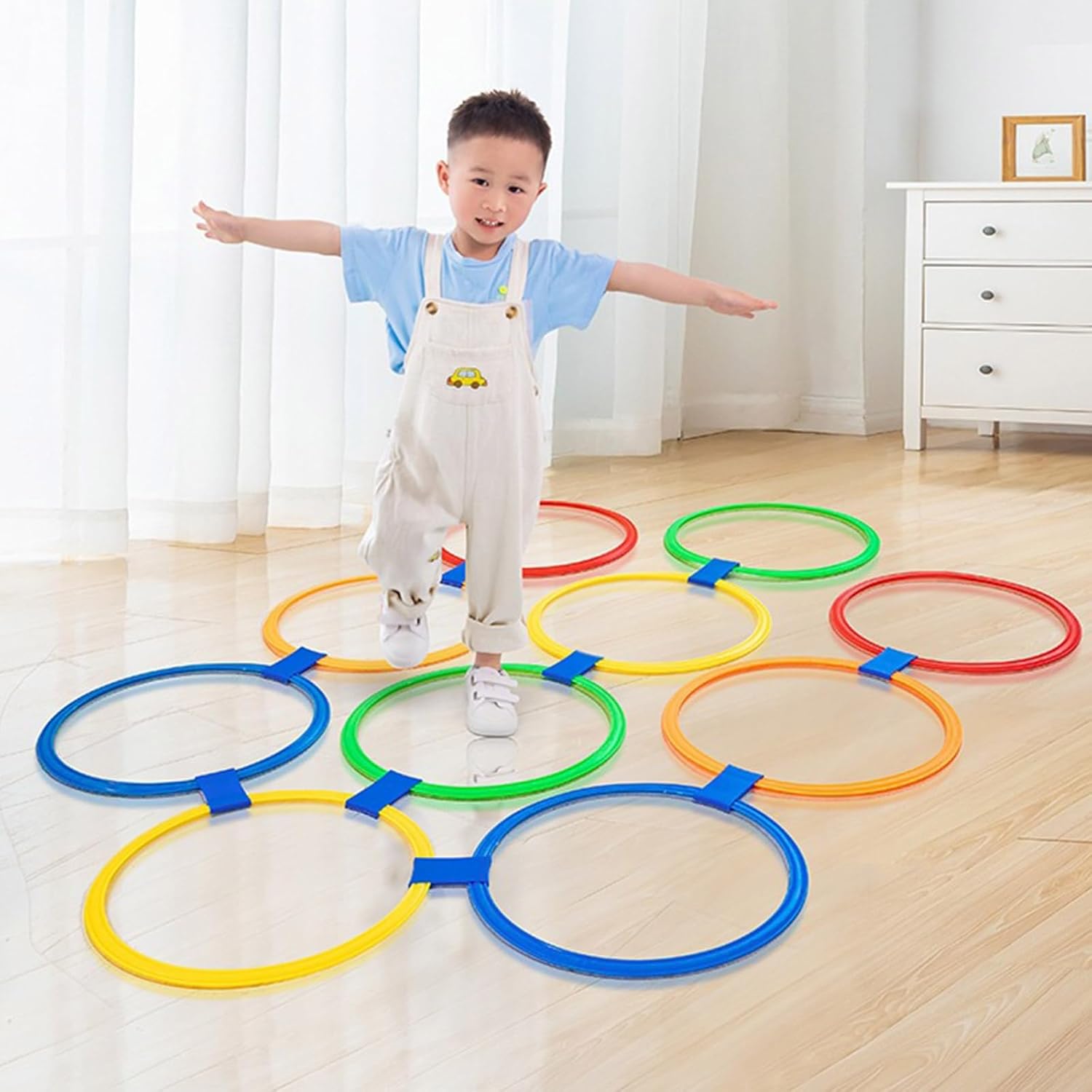 DIVERTIMENTO ALL'APERTO: migliora concentrazione e con questo set divertenti giochi per esercizi allenamento per bambini all'aperto, questi cerchi e connettori in plastica sono perfetti per gioco all'aperto e offrono divertimento per i bambini dai 2 anni in su 5 + 5: questi cerchi con superficie liscia sono realizzati in materiale ABS qualità, sicuro per i bambini con cui giocare. set include 5 e 5 connettori, che consentono bambini creare varietà schemi salto e migliorare loro coordinazione. PERFETTO PER I PICCOLI BAMBINI: questo set per saltare è progettato per studenti delle scuole materne elementari, per i bambini che vogliono giocare attivamente e sviluppare le proprie capacità fisiche. SANO ALL'APERTO: parco, in giardino o gioco, questo set per saltare offre entusiasmanti attività all'aperto per i bambini. Guardali saltare, e sfidare se stessi, tutto mentre divertono con amici. ISPIRA L'INNOVAZIONE: lascia correre l'immaginazione tuo figlio mentre crea i propri giochi e sfide con questo versatile set per saltare. Incoraggiali a trovare nuovi modi per utilizzare cerchi e connettori, aumentando creatività e le capacità risoluzione dei problemi.