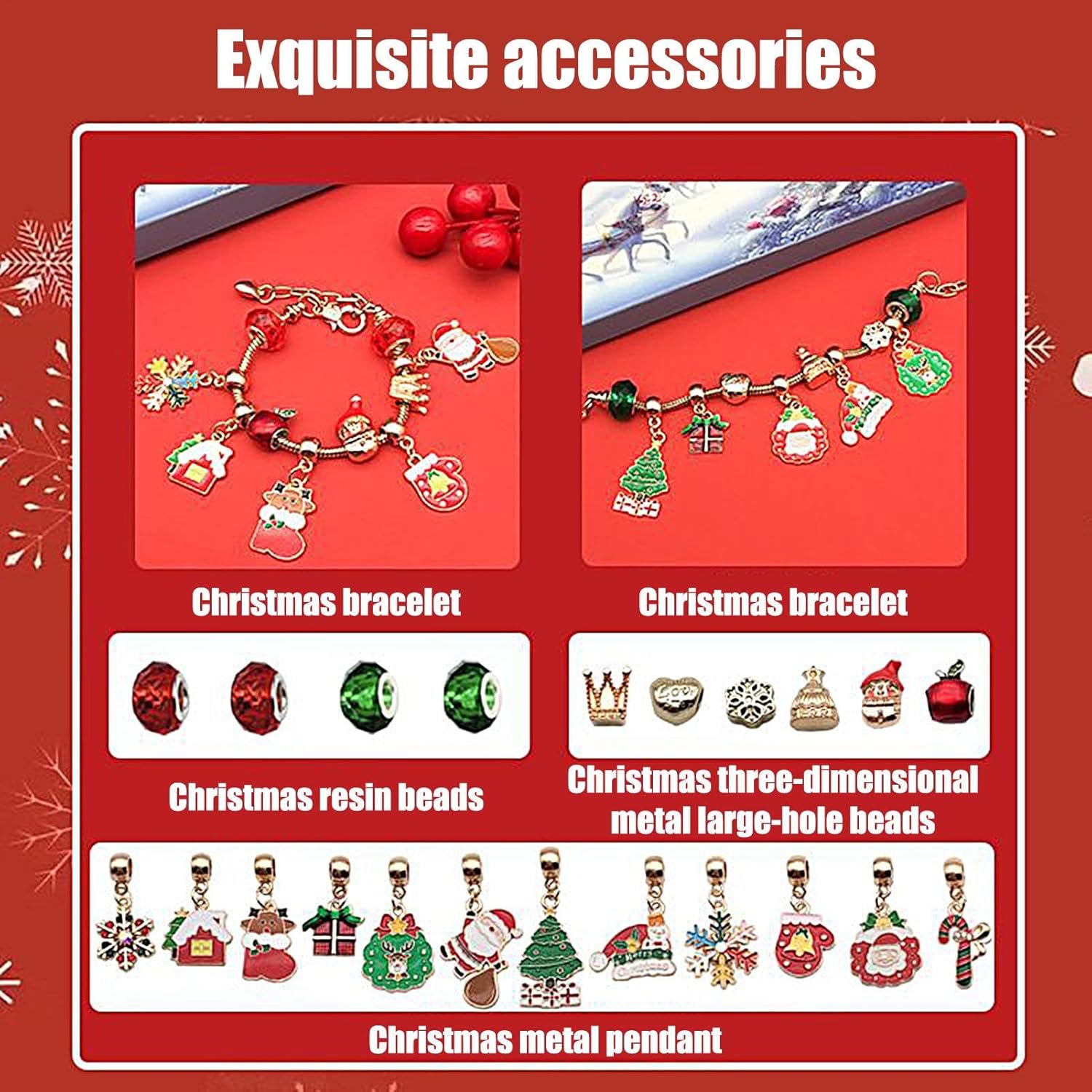 Esprimente anticipazione: il calendario COUNDDOWN del Natale comprende ciondoli e bracciali che creano gioiosa attesa per il giorno di Natale e allo stesso tempo migliorano le tradizioni delle vacanze con il suo design affascinante, perfetto per riunioni di famiglia 【Pratico mestiere】: i braccialetti con ciondoli a forma di cartoni animati nella collezione di conto alla rovescia di Natale promuovono lo sviluppo artistico delle abilità e consentono ai bambini di creare creatività durante la stagione festiva e migliorare sia il tempo di gioco che le feste stagionali 【Regalo di festa premuroso】: con la sua capacità di servire come regalo a duplice uso per compleanni e Natale, questo calendario con conto alla rovescia arricchisce le tradizioni delle vacanze e offre alle donne e alle ragazze un modo meraviglioso per celebrare occasioni speciali con gioia duratura Vacanze attraenti: questo calendario natalizio offre un bellissimo design che migliora il legame familiare nella stagione delle vacanze e crea momenti gioiosi 【Smooth Rim Comfort】: il calendario con conto alla rovescia utilizza materiale flessibile accanto ai cerchi lisci per garantire un tocco delicato, garantendo facilità d'uso e comfort duraturo, indipendentemente dal