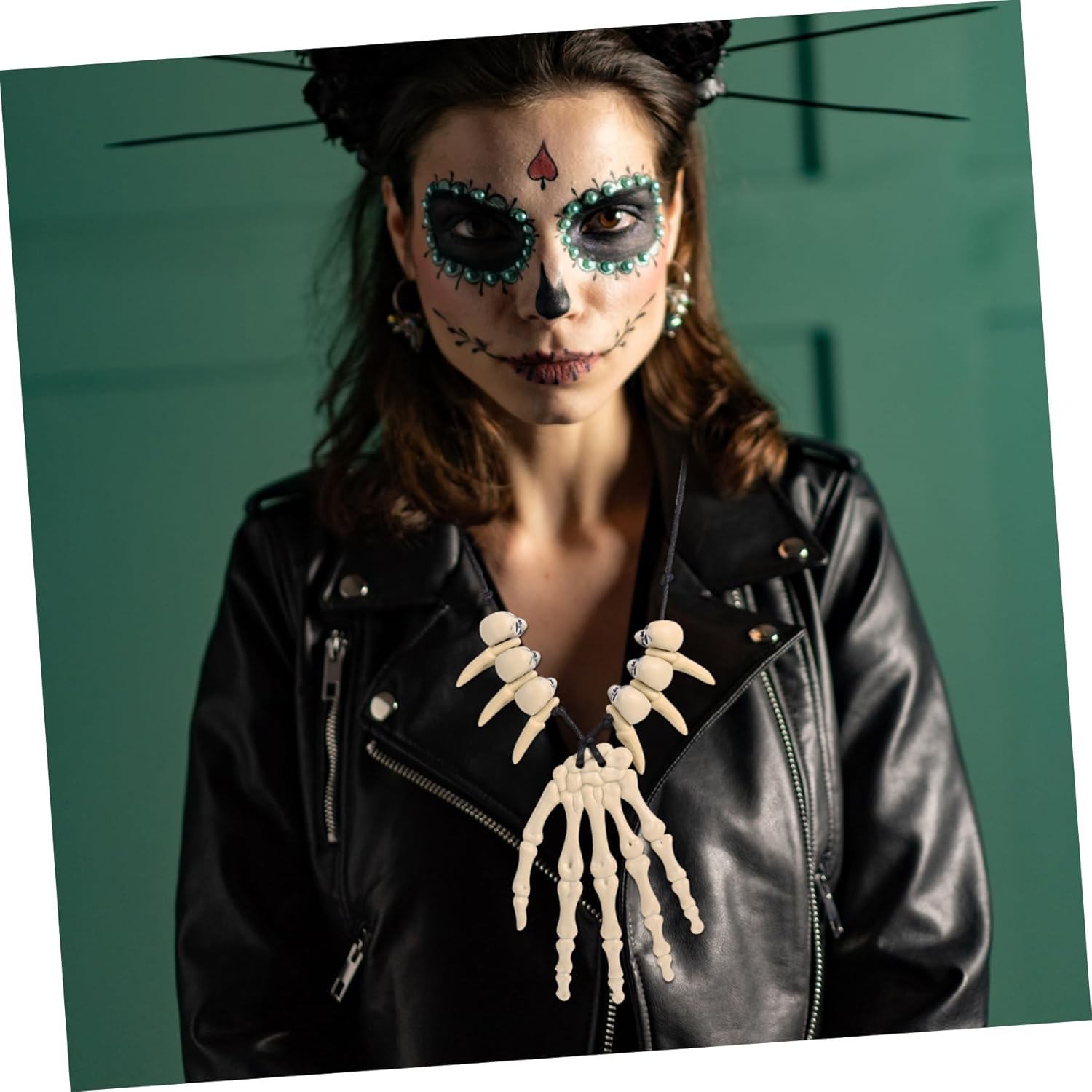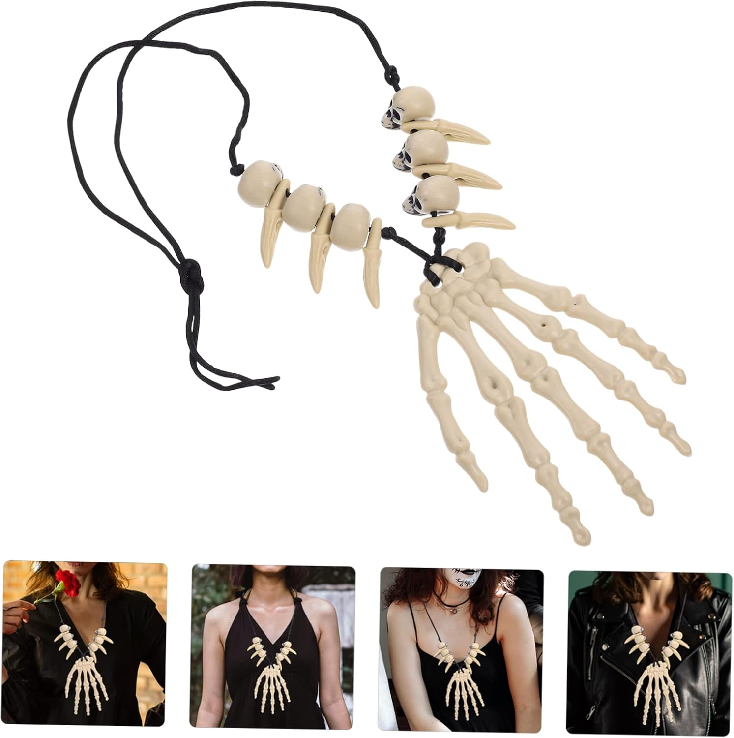 Collana del cranio gotico: il teschio e i decori delle osso della mano sulla collana sono molto delicati e orrore, per Halloween, collana a ciondolo osseo scheletro Collana per feste di Halloween: Halloween, Fancy Dress Party, Personal, Masquerade and Wedding, Daily Costume, Skull Jewellies Collane Halloween a mano ossea: design a tema Halloween retrò, adatto come accessori per costumi di Halloween e costumi in maschera, catena di collo di Halloween Parte di Halloween: questa collana di Halloween può abbinare il tuo trucco e il tuo outfit, accessorio per il collo di Halloween Gioielli per feste di Halloween: adatto per feste di Halloween, abbigliamento quotidiano, decorazioni per feste di ruolo, feste da ballo, feste, feste da ballo, ecc.
