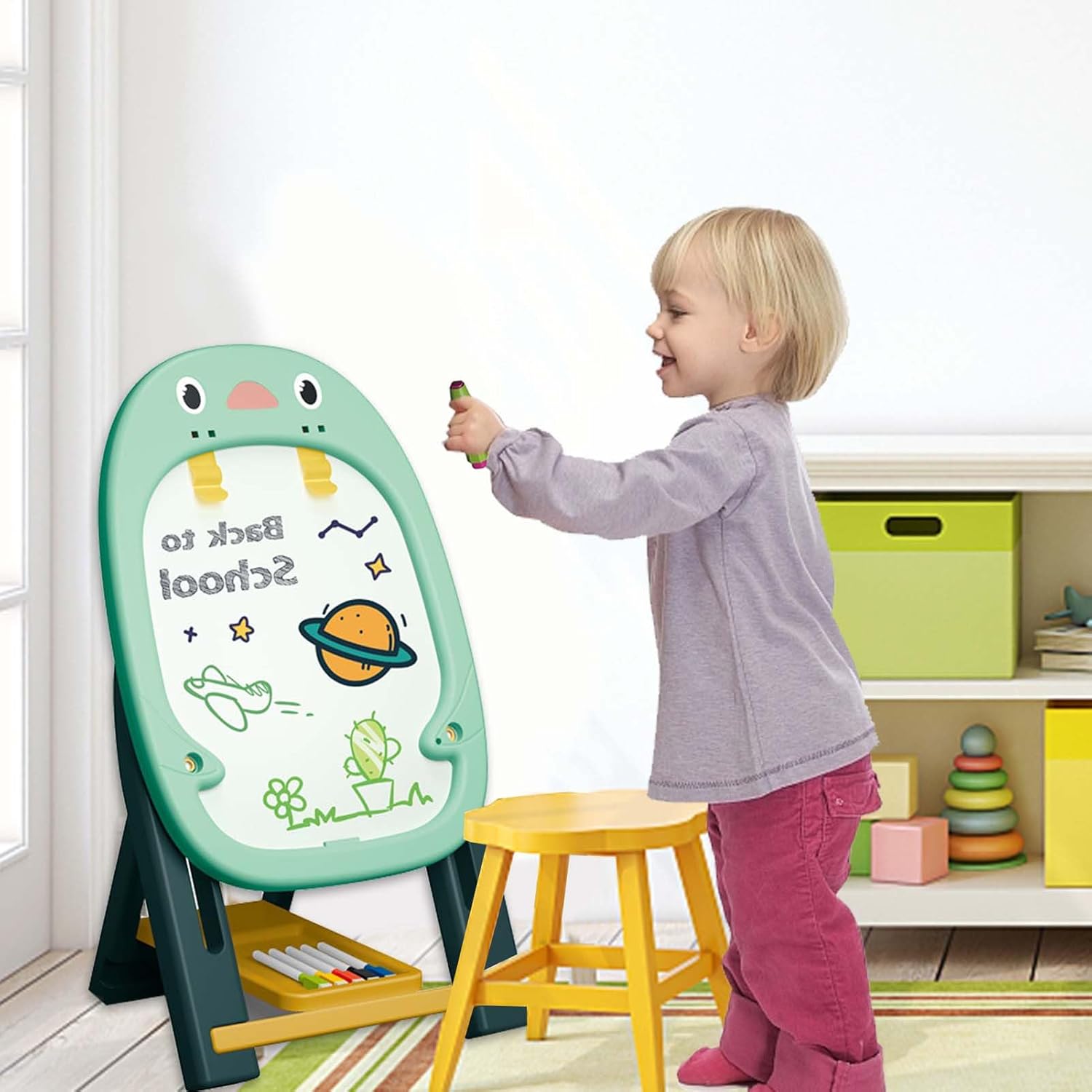 Superficie liscia e morbida: il materiale ABS è durevole e la superficie liscia previene i graffi. L'altezza regolabile garantisce una postura confortevole per i bambini di tutte le età. Migliora la tua immaginazione: la nostra selezione multicolore di disturbi infantili stimola la creatività del tuo bambino ed esprime la sua immaginazione e le sue capacità di gioco. Ispira il senso di tuo figlio e crea capolavori. Stabilità triangolare: il nostro gradino per bambini dispone di una robusta struttura triangolare rimovibile che impedisce efficacemente l'oscillazione. Realizzato con materiali di alta qualità, leggero e facile da trasportare. Possono essere utilizzati sia all'interno che all'esterno. Perfetto per giovani attivi. Numeri magnetici e set educativi dell'alfabeto: questo cavalletto unico include un ampio vano portaoggetti, una gomma a doppia faccia, colori con accessori colorati e un pennarello a secco. Perfetto per i bambini che amano imparare. Regalo interessante: sviluppa l'espressione del tuo bambino con questo cavalletto per bambini. Un bel regalo per ragazze e perfetto per Natale o compleanni. Perfetto per l'educazione della prima infanzia.