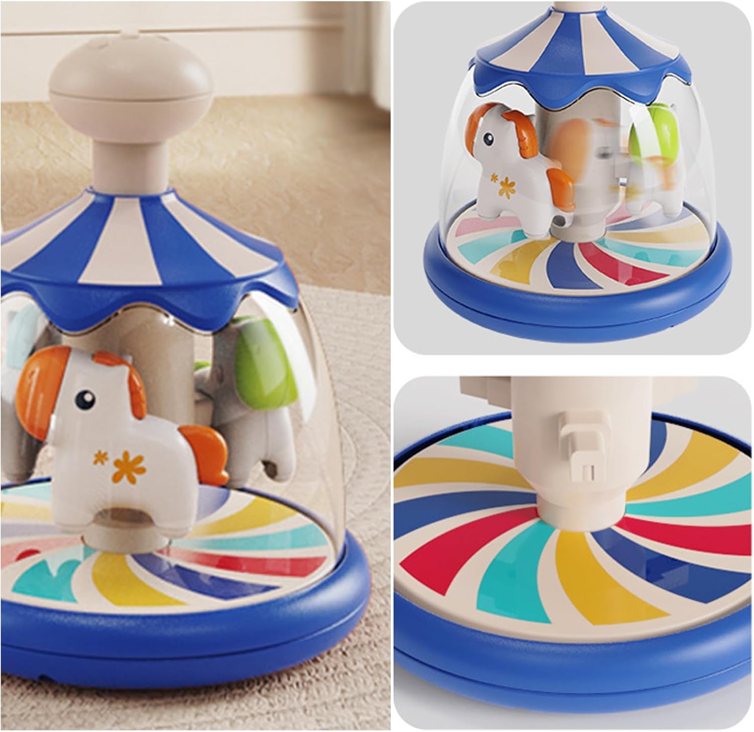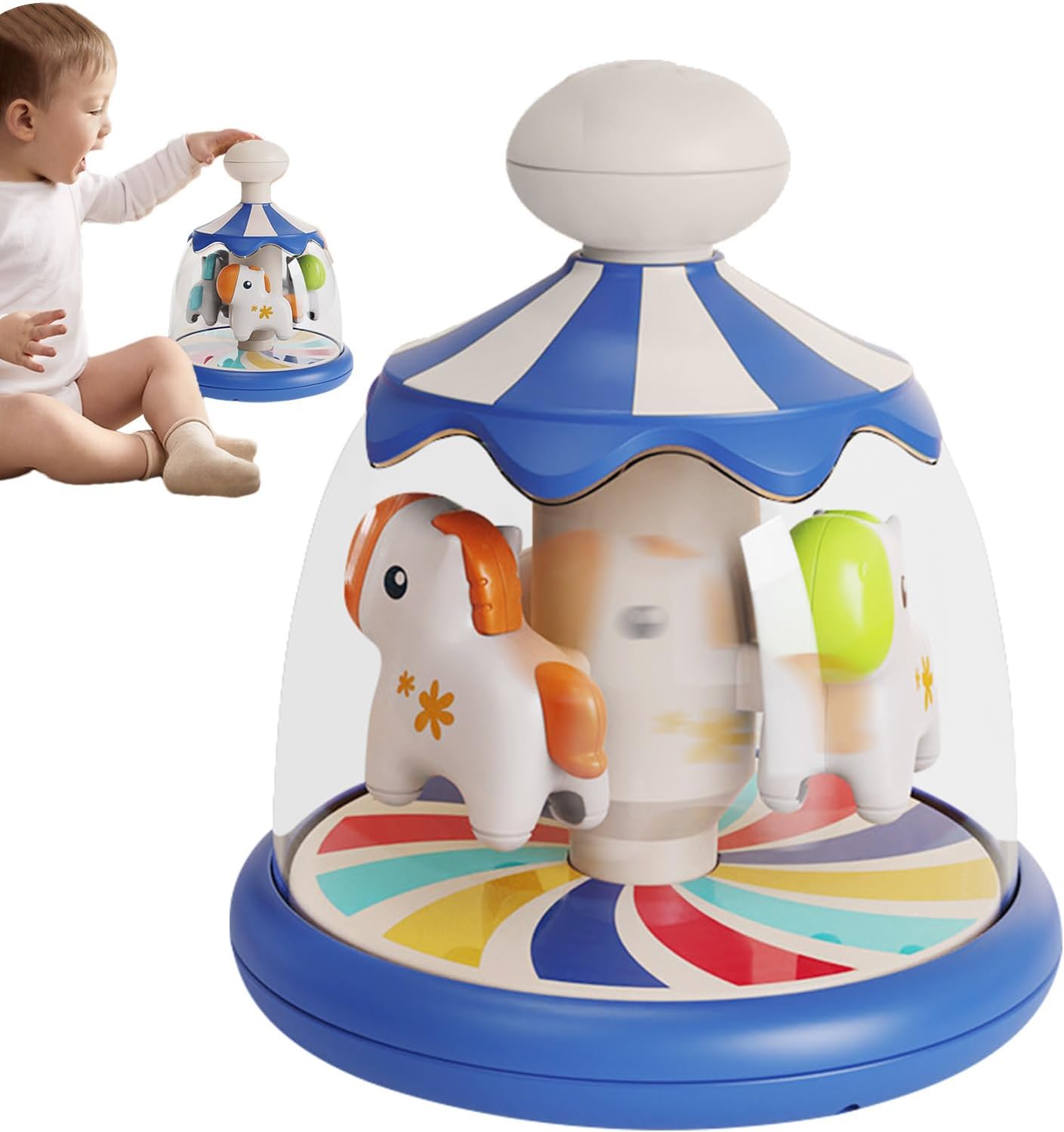Applicazione adattata ai bambini: coinvolgere i bambini con il design interattivo della nostra stampa e girare il giocattolo. Attiva la piastra rotante per ruotare e il cavallo di legno per muoversi con una semplice pulsazione per ottenere un effetto dinamico. Foster Curiosità e promuove l'esplorazione: questo giocattolo e il turno aumentano il divertimento del giocattolo, migliora l'osservazione e la coordinazione degli occhi e aiuta i bambini a comprendere la causa e l'effetto. Costruito per ultimo: realizzato con materiale ABS di alta qualità, questo giocattolo e la rotazione della stampa presenta una struttura resistente che è sicura e innocua, antica e antipresione, che garantisce che sia sicuro e rispettoso 'ambiente. Nuovo design della giostra: con un bel design da circo, questo giocattolo da stampa e gira risveglia l'immaginazione dei bambini, essendo visivamente molto attraente con i loro colori vivaci. Portabilità comoda: il nostro giocattolo da premere e girare è compatto e leggero e offre intrattenimento per i bambini a casa, all'aperto o durante il viaggio. Le sue dimensioni moderate lo rendono facile da trasportare, ideale per le famiglie all'aperto.