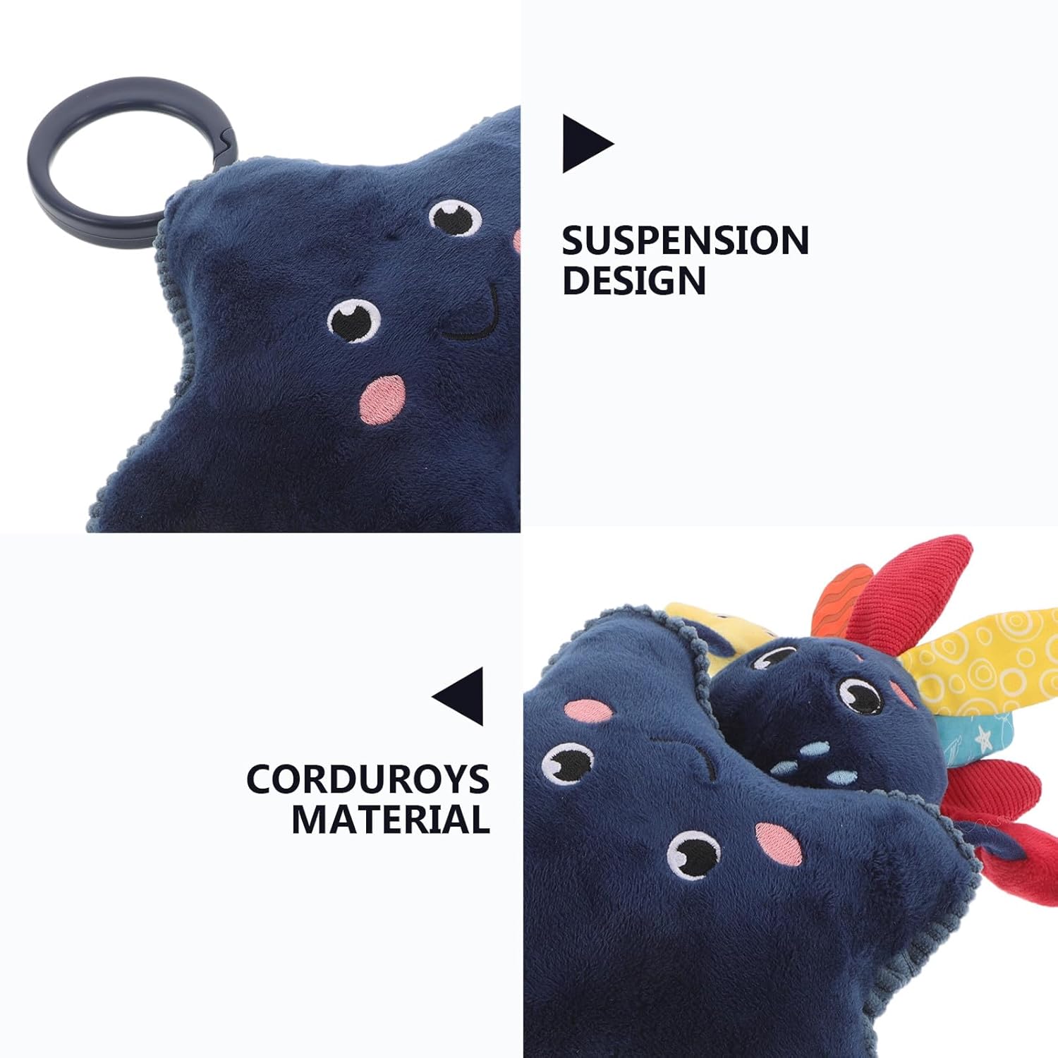Stimolazione sensoriale a tema marino: il polipo giocattolo presenta un vivace motivo marino, funge da giocattolo sensoriale da appendere e stimola la curiosità sia nel lettino che nel passeggino Caratteristiche di gioco interattive: gli elementi a sonagli di questo giocoso polipo forniscono un allenamento per la coordinazione occhio-mano come giocattolo da appendere per culla e giocattolo portatile da appendere per bambini Soluzioni di montaggio multiuso: che siano come giocattolo da appendere per culla, giocattolo per passeggino o come accessorio per il passeggino, questi giocattoli sospesi per i più piccoli sono facili da usare in viaggio o a casa Sicuri e rilassanti design: texture morbide e colori delicati formano il polipo di peluche e assicurano al tuo bambino un sonno tranquillo e un'area giochi con campanelli eolici Pulizia a lungo termine: facile da lavare e da curare, il polipo giocattolo per bambini garantisce freschezza e rende questi simpatici giocattoli di simulazione di polpo una parte indispensabile del comfort