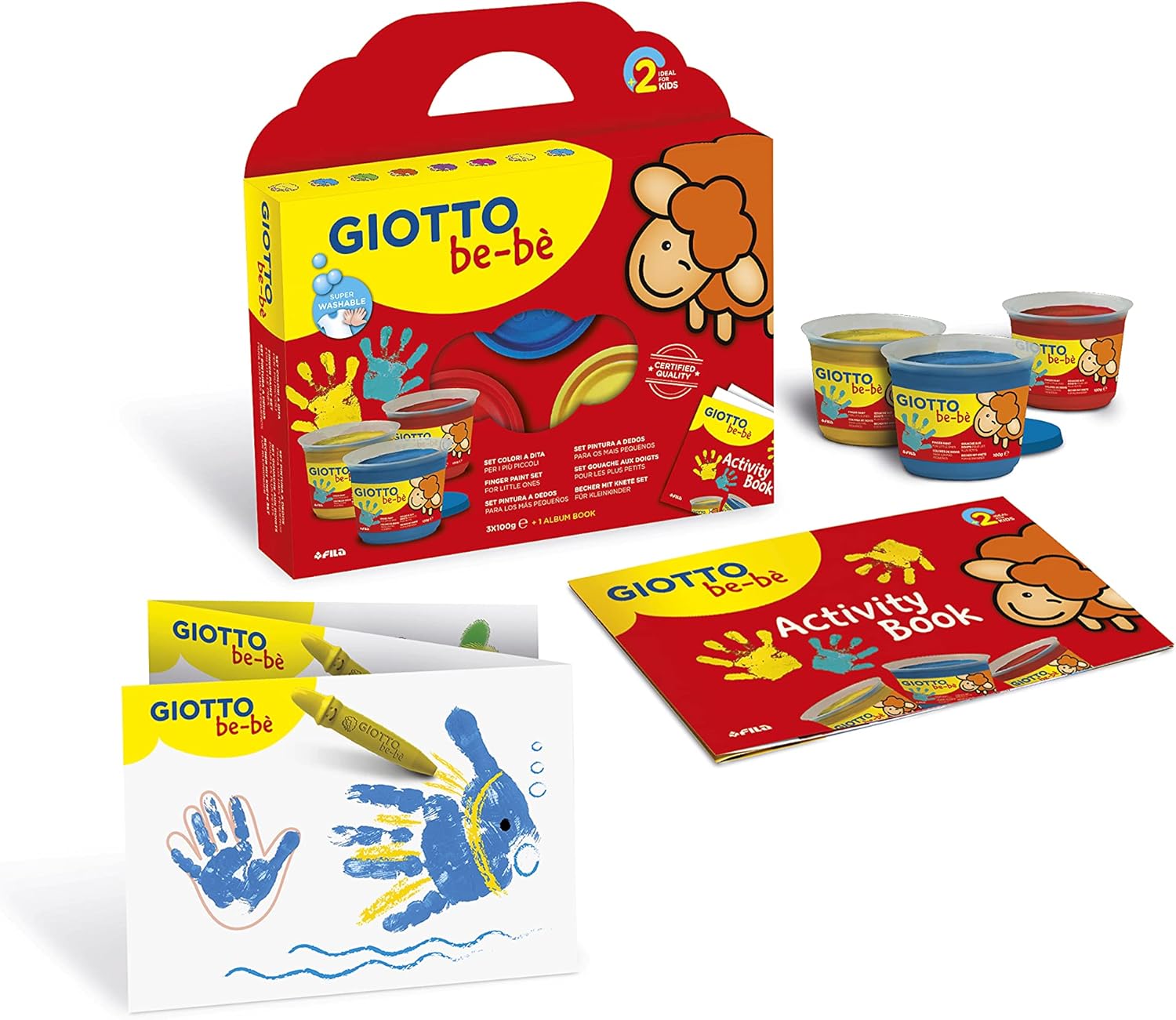 Giotto be-be - vernice per dita 3 comprende vernice, 3 spugne e un grembiule Dermatologicamente testato Adatto dai 2 anni in su Si lava facilmente con acqua tiepida