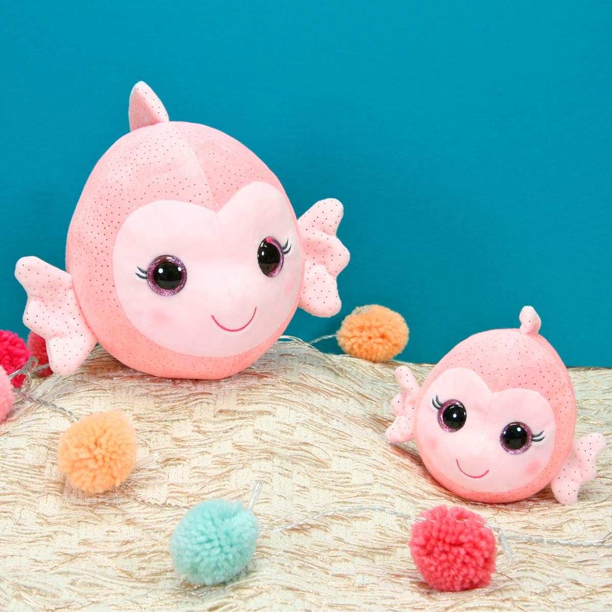 Pesce in peluche da 30 cm. Peluche sonoro. Immergiti nell'universo marino delle Bella Bloo Friends con il piccolo pesce color corallo in peluche extra morbido. Questo bellissimo pesce con paillettes di 30 cm emette una bella melodia quando si preme sopra. Adora le sue pinne con glitter e il suo sguardo da masticare. È il piccolo compagno ideale degli amanti del mare, da coccolare senza moderazione! Funziona con 2 pile LR 44 incluse e non sostituibili. Utilizzabile dalla nascita.