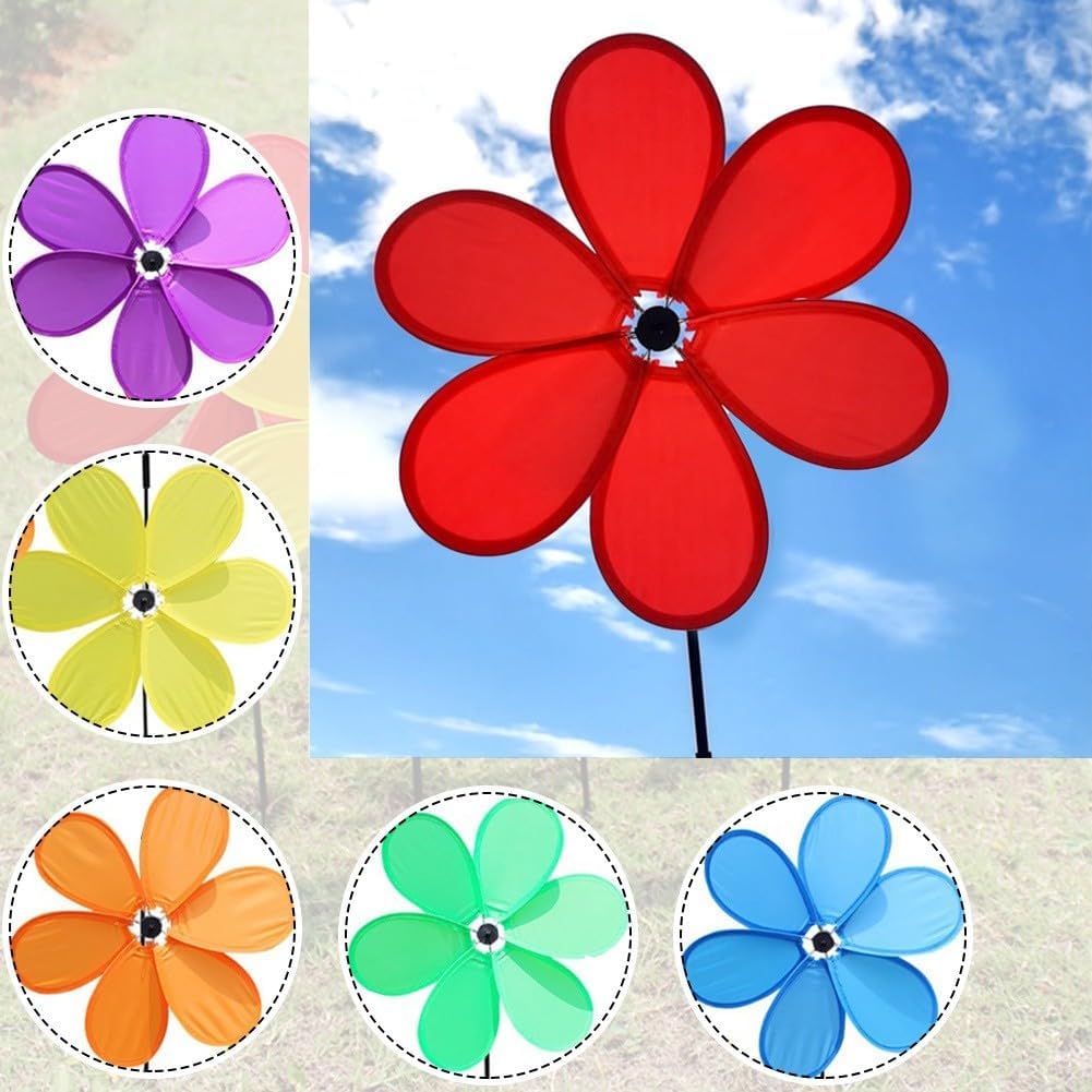 Colori vivaci: i colori vivaci e allegri rendono questo fiore a vento un'aggiunta accattivante alla tua casa, giardino o patio, migliorando qualsiasi spazio esterno. Sicuro e leggero: realizzato in tessuto e fibra di vetro, questo mulino a vento è progettato pensando ai bambini, sicuro pur essendo leggero per una facile maneggevolezza. Facile da usare: installa o rimuovi facilmente questo pezzo decorativo; ruota automaticamente con il vento, aggiungendo un tocco dinamico al tuo cortile o giardino. [Promemoria dimensioni] Ogni girandola misura 30 cm; si prega di controllare il proprio spazio per una vestibilità perfetta.