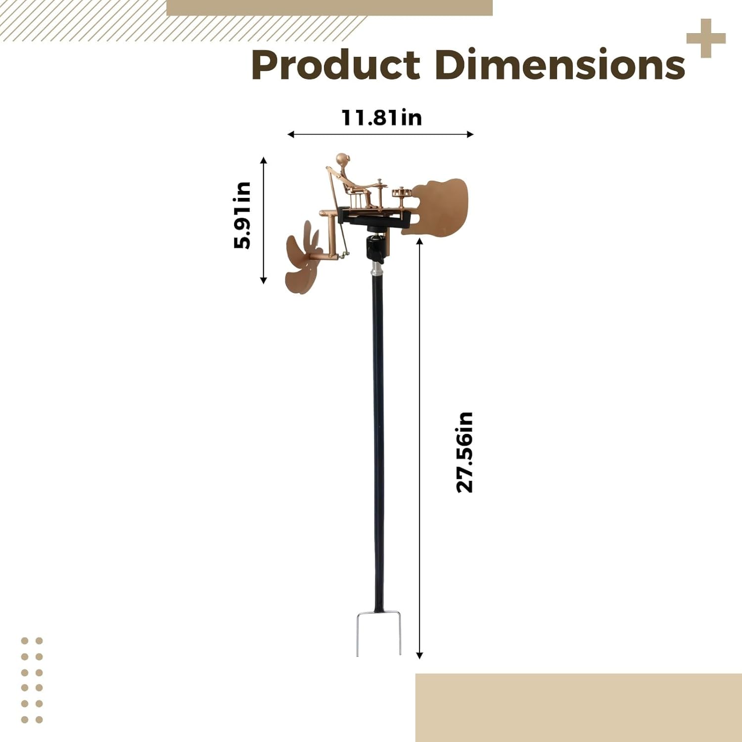 Artigianato unico: realizzato a mano da abili s, questo mulino a vento presenta una lavorazione dei metalli esperta; ogni pezzo è unico nel suo genere, mostrando dettagli intricati e arte Movimento vibrante: la girandola a vento presenta una figura che ruota nel vento, creando un vivace display ritmico; per un'aggiunta giocosa da giardino Finitura in rame vintage: realizzato in metallo color rame di alta qualità; questo mulino a vento dà un tocco nostalgico e rustico a qualsiasi spazio esterno, dai terrazzi ai giardini Design resistente alle intemperie: costruito in ferro e saldato a mano per una maggiore resistenza; questo mulino a vento resiste alle condizioni esterne, offrendo resistenza alla ruggine e alla pioggia per l'esposizione tutto l'anno accento esterno: una decorazione da giardino accattivante e funzionale; aggiunge movimento e arte agli spazi esterni come cortili, giardini e patii