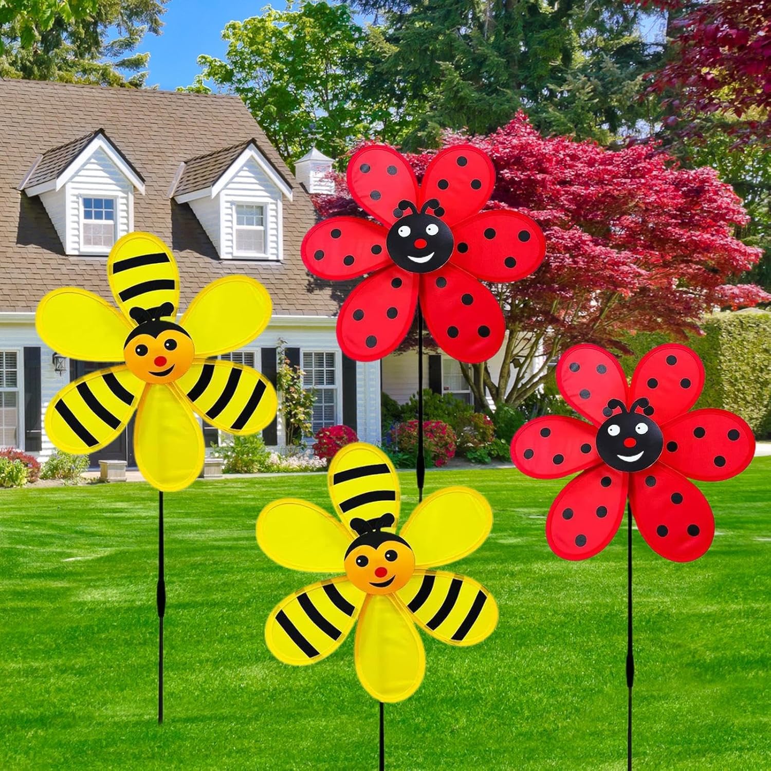 Qualità durevole: Tecnologia di verniciatura a doppio strato termosaldato protegge dalla sabbiolina e dalle variazioni termiche, garantendo rotazione 365 giorni all'anno con manutenzione zer Design Performante: di bilanciamento ottimizzato e struttura modulare reagisce con sensibilità alle correnti d'aria, mantenendo stabilità e movimento continuo in condizioni meteorologiche variabil Set decorativo ispirato: Trasforma il tuo spazio outdoor con questo set tematico che unisce il fascino degli insetti alla praticità delle decorazioni mobili, ideale per chi cerca elementi ornamentali innovativi che combinano movimento armonioso e stile allegr Montaggio Istantaneo: Design sicuro e stile accattivante permettono installazione semplice in 3 passaggi, ideale per chi cerca decorazioni esterne veloci e senza sforz Adattabilità Completa: Soluzione ideale per prati, cortili e zone relax esterne, questa girandola multifunzionale incanta con la sua rotazione costante che arricchisce l'atmosfera degli eventi, integrandosi perfettamente con arredi da giardino di ogni tipologia