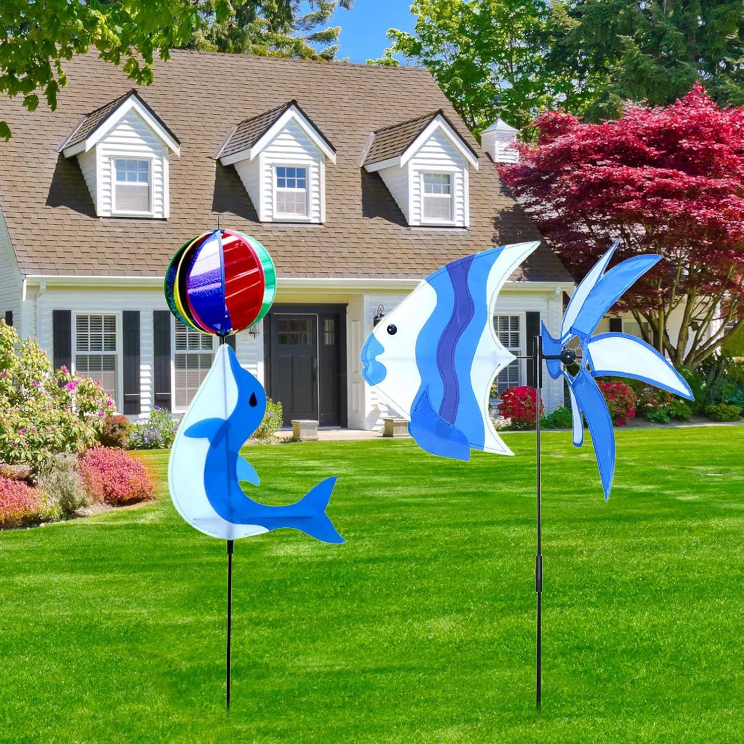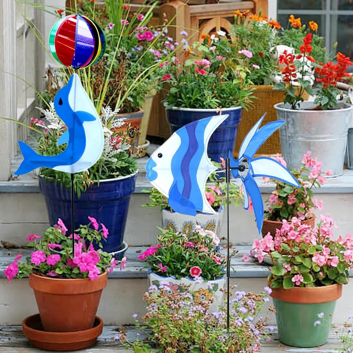 Vivace motivo delfino: con un vivace tema delfino, questo mulino a vento girevole dona al tuo esterno un affascinante effetto visivo e incoraggia i bambini a partecipare a scoperte piacevoli all'aperto. Il design non è solo decorativo, ma anche divertente per i bambini che amano giocare nella natura. Perfetto per il giardino o il cortile per ravvivare lo spazio esterno Design resistente alle intemperie: grazie alle proprietà impermeabili e antiruggine, questo mulino a vento mostra una buona resistenza agli agenti atmosferici. Mantiene i suoi colori accattivanti e sfida facilmente le sfide di un posizionamento permanente all'aperto. Il mulino a vento da giardino è perfetto per tutte le stagioni e rimane stabile e attraente anche in condizioni avverse. Regalo creativo: aggiungi un tocco caldo a compleanni, feste, Natale o feste di anno con questo mulino a vento da giardino. Mostra il tuo apprezzamento per la famiglia, gli amici e i partner romantici in un modo unico. Questo mulino a vento non è solo decorativo, ma anche una significativa idea regalo per tutte le occasioni. Posizionatela nel vostro giardino e aggiungete un tocco affascinante. Ideale per gli amanti della decorazione del giardino e delle attività all'aperto. Facile da inserire: il picchetto permette di inserire facilmente il fienile da giardino nel terreno o in un vaso di fiori, rendendo la superficie esterna immediatamente vivace. Non sono necessari attrezzi, quindi il montaggio è facile e veloce. Versatilità elegante: questo mulino a vento è adatto sia per prati terrazze che corridoi ed è ideale per matrimoni, feste di compleanno o decorazioni quotidiane. Offre flessibilità senza sacrificare l'attrattiva visiva. Una soluzione elegante per il vostro spazio esterno.
