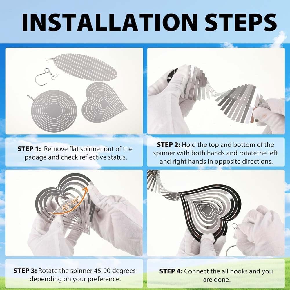 La confezione include: Rivelerai il campanello a vento 3D in acciaio inossidabile, il campanello a vento in metallo è composto da tre parti: un cerchio, un cuore e una foglia. Le nostre girandole ornamentali 3D riflettenti visive utilizzano il movimento del vento e i riflessi di luce per tenere gli uccelli lontani da qualsiasi angolazione. Invece di spaventare e danneggiare gli uccelli, il nostro dispositivo spaventa umanamente li spaventa riflettendo la luce visiva. Materiale di alta qualità: le nostre girandole a vento sono realizzate in acciaio inossidabile resistente con tecnologia di taglio laser per formare una forma vivida. Rifinito con rivestimento in vernice antiruggine, l'arredamento del cortile esterno mostra prestazioni solide a prova di tempo e può adattarsi a tutti i tipi di tempo, sia soleggiato, nuvoloso o piovoso. Con forte resistenza alla corrosione e alla ruggine. Design unico: le nostre sculture a vento 3D da appendere non solo fungono da deterrente per uccelli, ma anche come bella decorazione da giardino. I nostri dispositivi spaventosi per uccelli all'esterno della decorazione del giardino esterno utilizzano movimento del vento e riflessi di luce per tenere gli uccelli lontani da qualsiasi angolazione. Facile da usare: il dispositivo di paura degli uccelli arriva completamente assemblato, pronto per essere appeso e iniziare a lavorare immediatamente. Il girandola riflettente può essere semplicemente montato attaccando un gancio girevole, che dispone di un'apertura per appenderlo facilmente. Ampia applicazione: questa girandola a vento è adatta per uso interno ed esterno, la girandola a vento non può essere utilizzata solo come decorazioni su pareti interne, finestre e lampadari. Puoi anche metterli su alberi esterni, balconi, piscine, cortili e giardini come parte della decorazione del giardinaggio. Sono così belli che ruotano al vento e riflettono la luce del sole.
