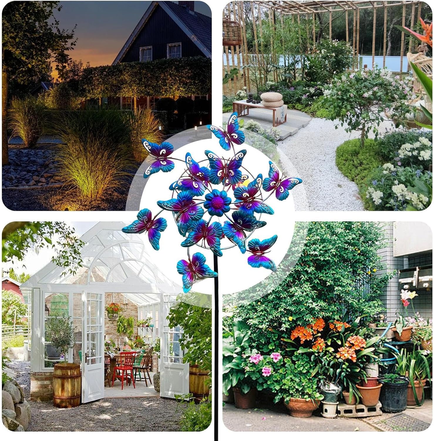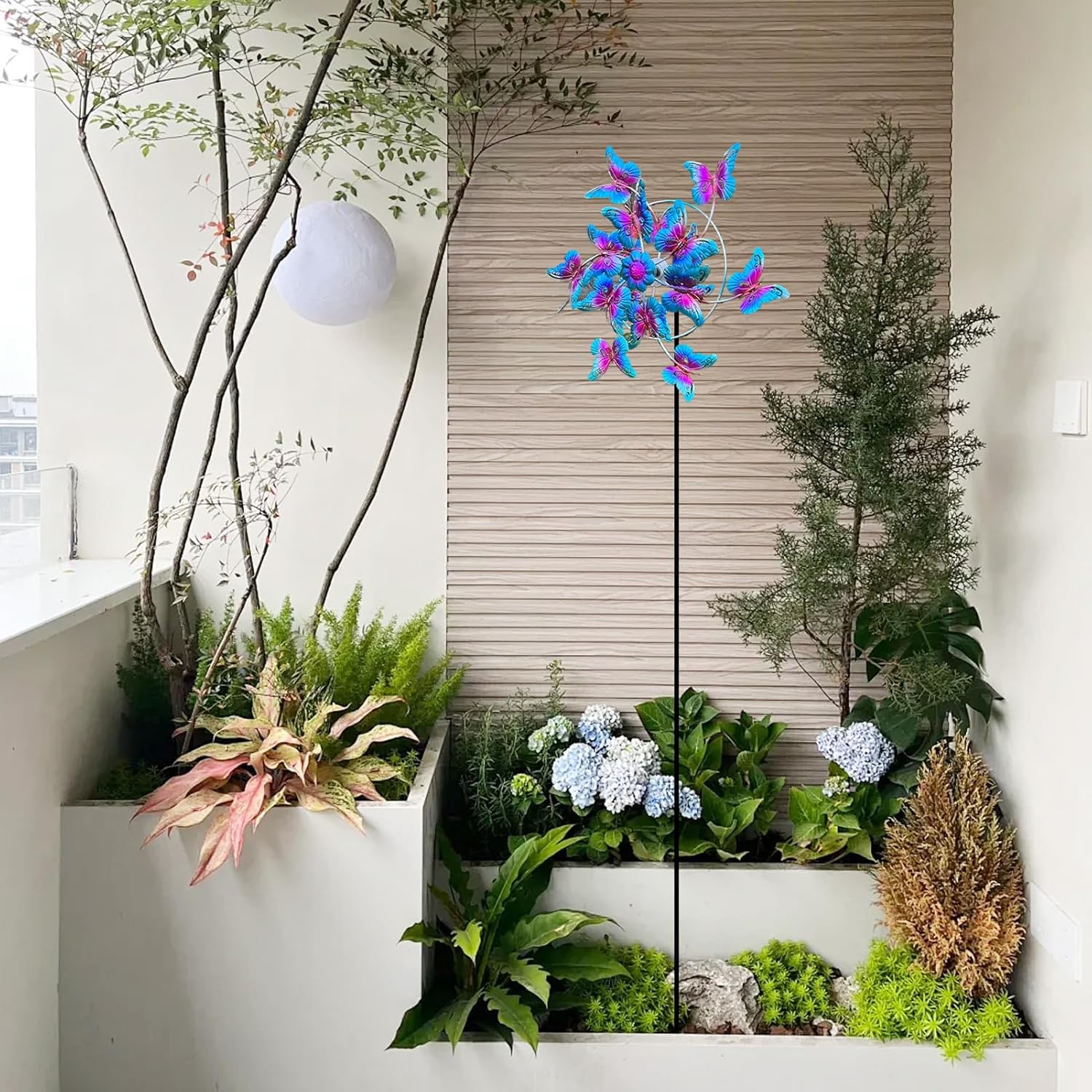 Durata certificata: La combinazione di struttura laminata a freddo e strato protettivo anticorrosione garantisce resistenza sbiadimento e prestazioni ottimin qualsiasi stagione, ideale per l'installazione permanente in giardino Rotazione : Le pale eoliche si muovono armoniosamente con il , mentre le farfalle centrruotano elegantemente, creando un affascinante spettacolo dinamico per abbellire giardini e spazi esterni con movimento naturale e ipnotico Adattabilità multisetting:Decora qualsiasi ambiente esterno o interno aggiungendo un tocco dinamico a terrazze, cortili e zone relax, complemento ideale per ringhiere da balcone, floree strutture verticgrazie al meccanismo rotante silenzioso Farfalle Artistiche: Girandole decorative a tema natura con 3D in rilievo dettagliato, perfette per aggiungere un'estetica naturale e un tocco artistico unico a giardini, terrazzi e spazi esterni. La struttura resistente garantisce movimento armonioso con il minimo Completo Pronto: Tutti gli elementi per l'installazione inclusi nella confezione, progettati per fissaggio stabile su muri o terreno senza necessità di attrezzature aggiuntive