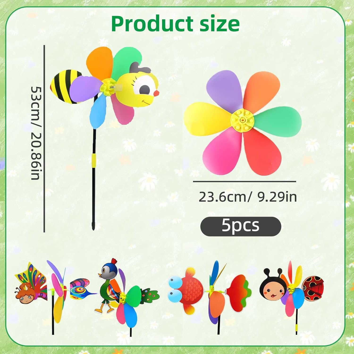 Materiali di alta qualità per un uso sicuro e durevole: Ogni girandola a vento per bambini è realizzata in plastica di alta qualità, resistente e atossica, pensata per garantire una lunga durata anche con un utilizzo continuo all'aperto. I materiali robusti rendono queste girandole ideali per resistere al sole e al vento, mantenendo sempre i colori vivaci. Perfette per il giardino,il balcone o il terrazzo, queste girandole decorative aggiungono un tocco di gioia e sicurezza all’ambiente est Design colorato e divertente per stimolare la fantasia: Il set include 5 girandole da giardino con forme diverse e allegre: una simpatica ape, un pesciolino, un pavone dai colori brillanti, una coccinella e un angelo. Ogni girandola è progettata con dettagli curati che catturano l’attenzione dei bambini e stimolano il loro interesse per la natura. Ideali per giocare all’aperto o per decorare vasi e aiuole, queste girandole decorative regalano allegria e colore a ogni angolo verde. Montaggio semplice anche per i più piccoli: Le girandole da esterno sono facili da assemblare e non richiedono strumenti speciali. I bambini possono partecipare al montaggio in totale sicurezza, rendendo l’attività ancora più divertente. Una volta montata, ogni girandola misura circa 30 x 54 cm, una dimensione perfetta per essere inserita in un vaso o in un’aiuola, garantendo un forte impatto visivo senza occupare troppo spazio. Decorazione perfetta per ogni angolo verde: Queste girandole da giardino ruotano al vento creando un effetto visivo dinamico e rilassante, simile al volo di insetti colorati. Oltre ad arricchire esteticamente il giardino, possono essere posizionate su balconi, terrazzi o prati per decorare in modo creativo. Il movimento e i colori vivaci le rendono un’ottima scelta anche per allontanare piccoli animali in modo naturale e decorativo. Ideali per feste, regali e decorazioni stagionali: Oltre all’uso quotidiano come girandole decorative da giardino, queste girandole colorate sono perfette anche per feste di compleanno, eventi all’aperto o come idea regalo per bambini. Possono essere utilizzate in spiaggia, sui tetti o nei frutteti per aggiungere un tocco di allegria e personalità. Con il loro design giocoso e le dimensioni ben bilanciate, sono un elemento decorativo versatile per ogni stagione.