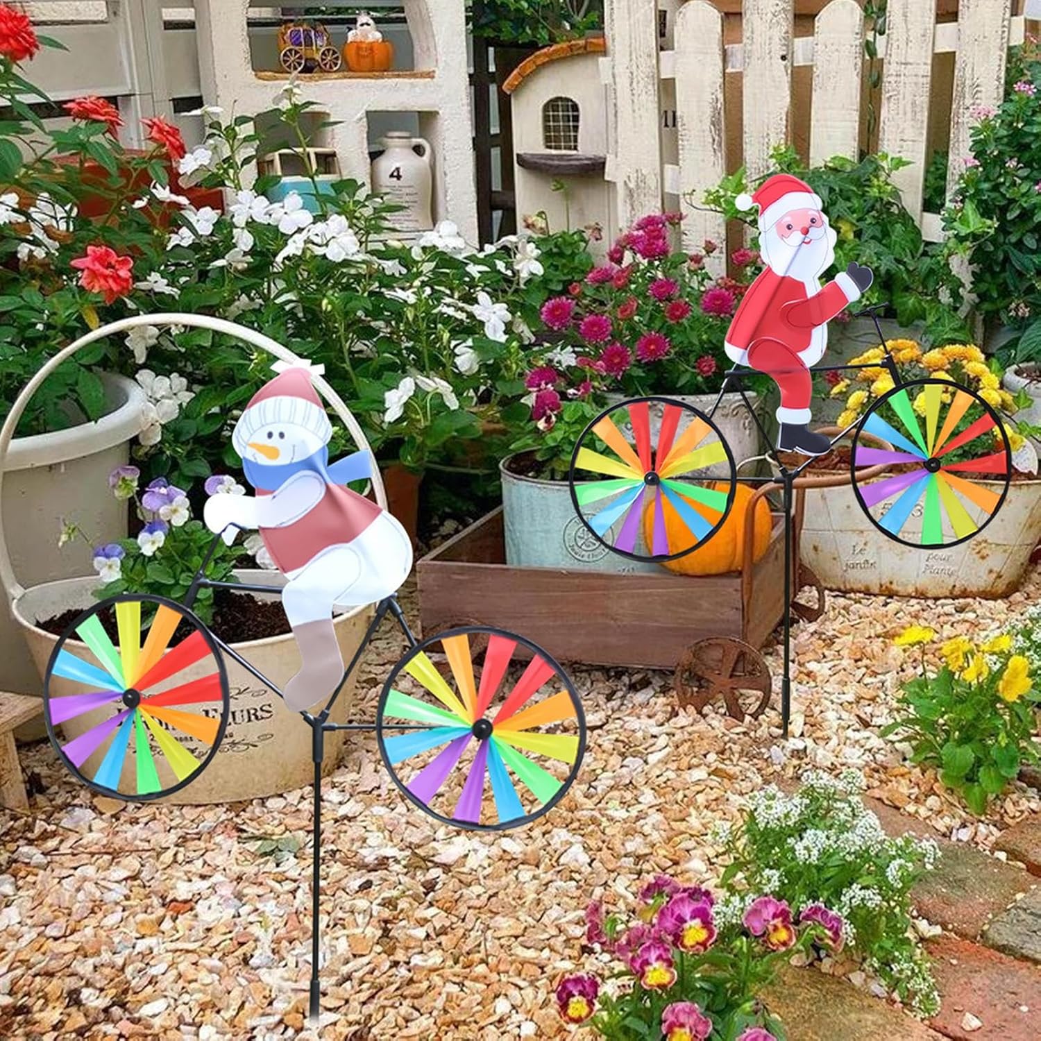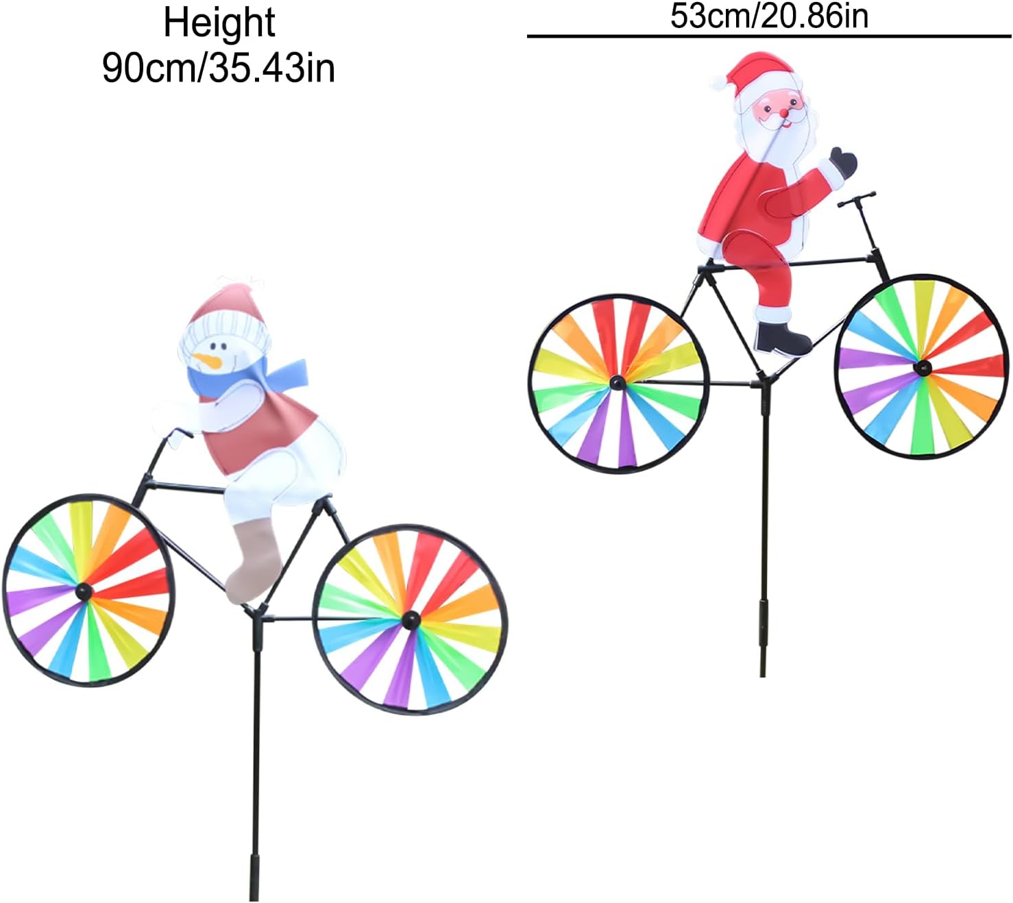 Materiali eccellenti: realizzate con materiali di alta qualità antiruggine, queste girandole sono dotate di tessuto impermeabile e PP, garantendo un fascino festivo di lunga durata in qualsiasi condizione atmosferica Comodo da installare: basta inserire il paletto nella ruota e posizionarlo nella tua area esterna preferita per aggiungere un tocco di colore all'ambiente circostante. Ogni girandola del mulino a viene fornita con un paletto Ampia applicazione: ravviva il tuo arredamento natalizio con queste splendide girandole natalizie. Che tu stia cercando di aggiungere un tocco di fascino festoso al tuo balcone, cortile, o anche al tuo soggiorno, queste decorazioni versatili sono perfette per qualsiasi spazio Regalo favorevole: diffondi gioia e delizia questo periodo natalizio con le nostre vivaci girandole. Buone come regalo a per donne e uomini, queste girandole sono anche un regalo premuroso per compleanni, Ringraziamento e qualsiasi occasione speciale Cheer natalizio: entra spirito natalizio con le nostre girandole natalizie. L'aspetto e i colori naturali un'atmosfera festosa per il tuo giardino. L'esclusivo design del mulino a presenta Babbo Natale e pupazzi di neve che pedalano nel