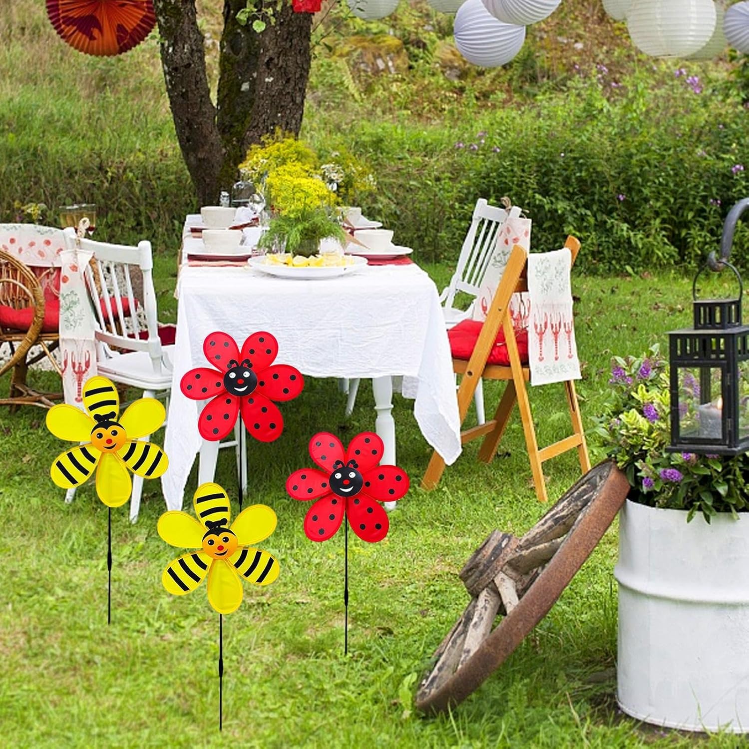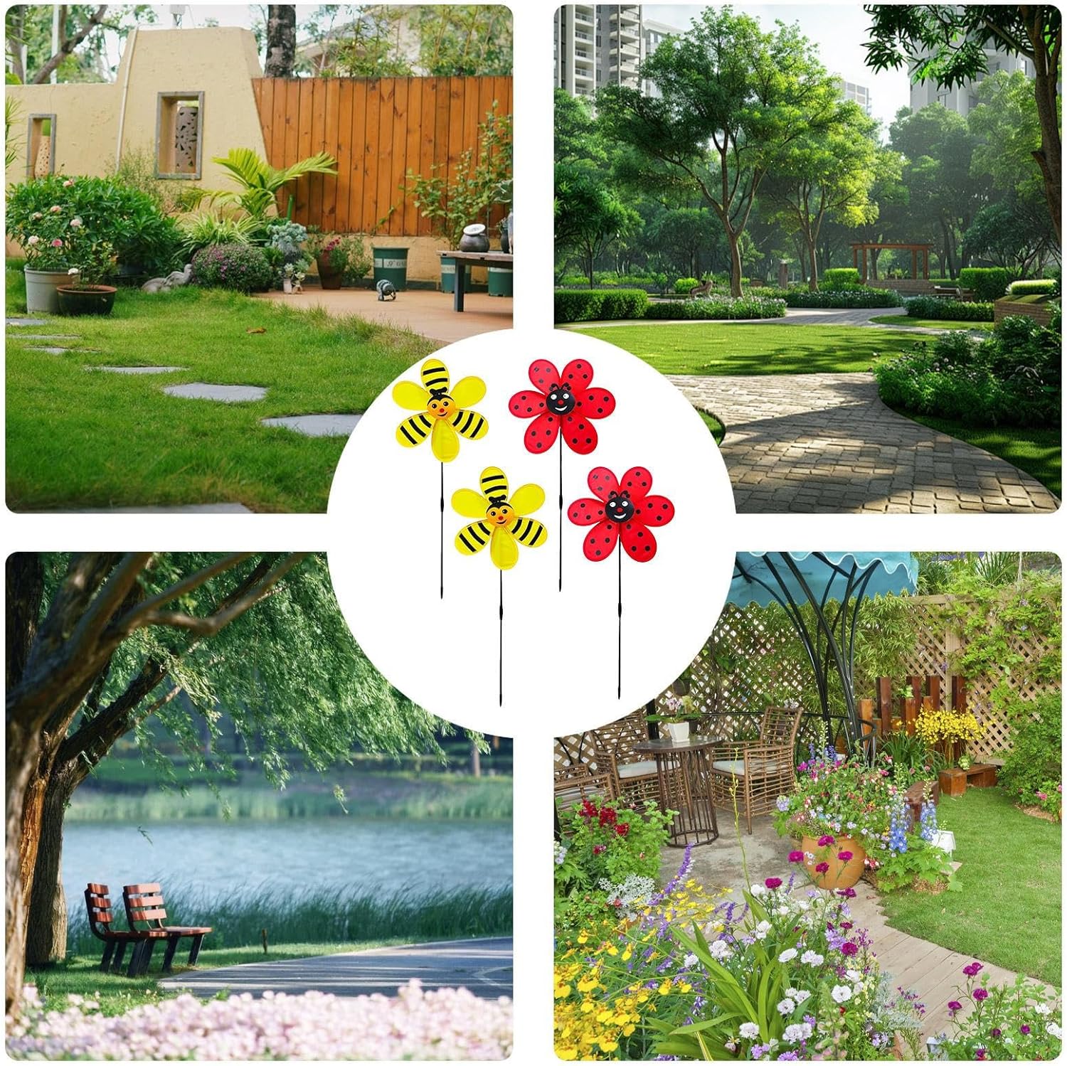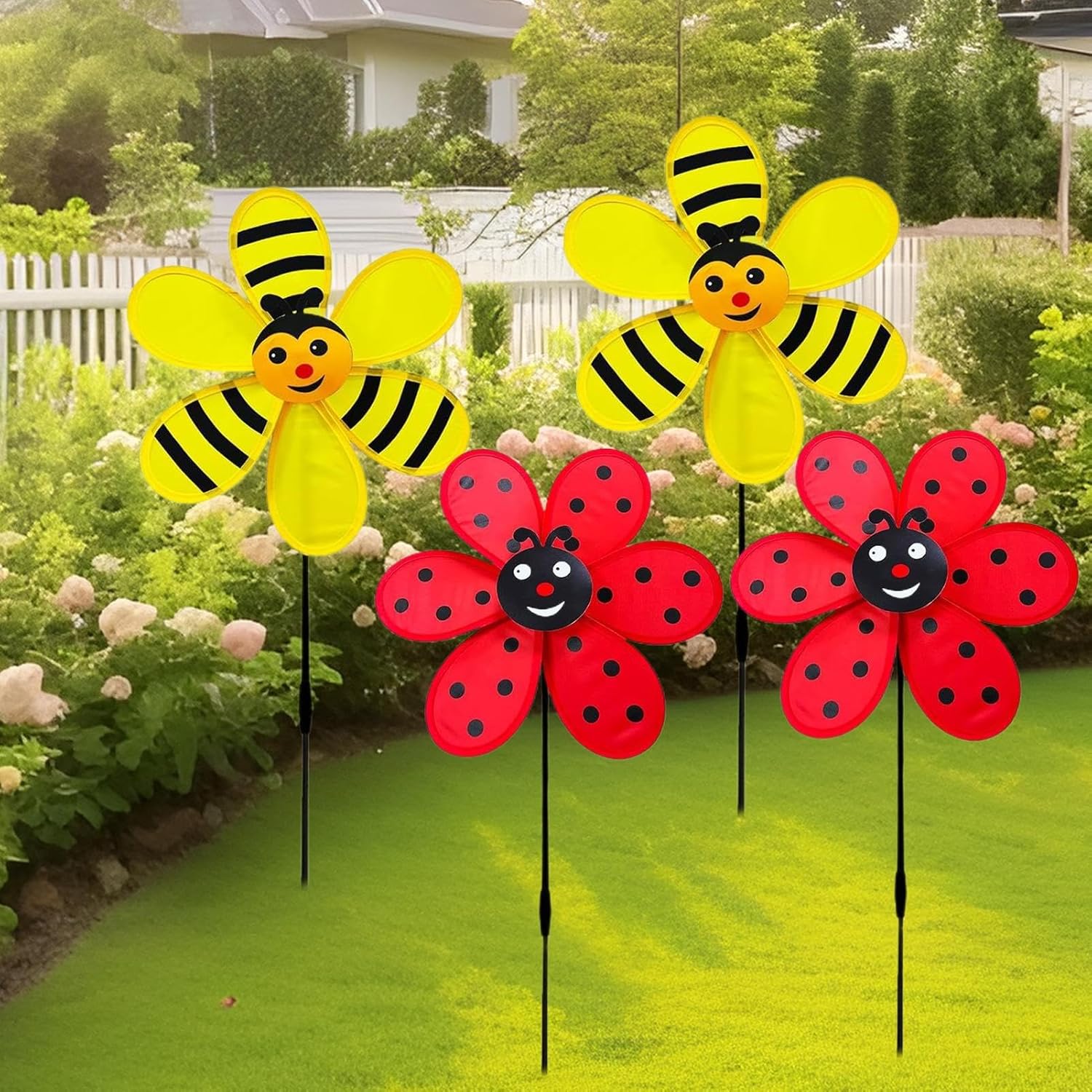 Protezione dagli agenti atmosFERICI: Tecnologia antiusura che previene scolorimento e ossidazione, mantenendo la brillantezza cromatica nel attraverso materiali leggeri combinati con design aerodinamico stabilizzant Giardinaggio: Elemento scenografico ideale per terrazzi e giardini, trasforma l'ambiente esterno con giochi di riflessi metallici e movimenti ipnotici che variano con l'intensità del vent Design a tema insetti: La girandola con motivi coccinella e ape offre un design elegante e originale, creando suggestivi giochi di movimento che rendono unico qualsiasi angolo del giardino o balcone con decorazioni in costante evoluzion Configurazione Veloce: Struttura resistente alle intemperie con di assemblaggio intuitivo, perfetta per aggiungere movimento al giardino senza competenze tecnich Valore Decorativo: Ideale per valorizzare aree outdoor, il movimento ritmico di questa girandola da giardino dona vitalità a terrazzi e spazi verdi, esaltando l'ambiente sociale con un'eleganza che si adatta a qualsiasi stile architettonico