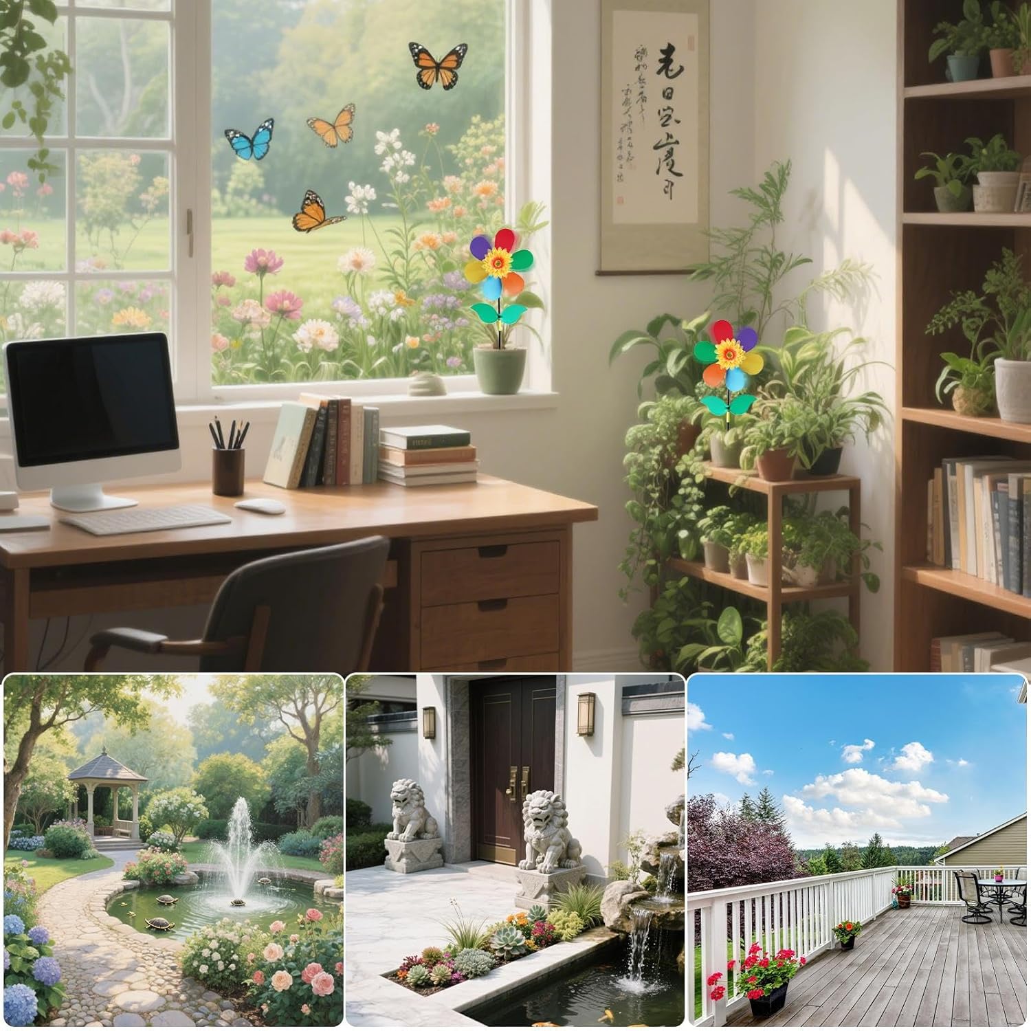 Profondità Visiva Migliorata: I petali arcobaleno girano creando giochi cromatici, producendo contrasto e tridimensionalità mentre combinano bellezza naturale e creatività nello spazio esterno Fascino Estetico Naturale: Centro tavolo dall'aspetto naturale che valorizza esterni e interni, regalando un tocco gioioso e decorativo a giardini, terrazze o salotti con il suo effetto luminoso. Costruzione : Grazie al robusto telaio metallico, questa girandola resiste agli agenti atmosferici, non arrugginisce e preserva l'aspetto originale nonostante prolungata esposizione agli elementi Impiego Multifunzionale:Montaggio intuitivo su supporti vari come ringhiere, fioriere e tavoli. Trasforma terrazze, porticati e angoli casa con coreografia che equilibra senza sforzo decorazioni fisse e elementi dinamici. Rotazione e Vivace: Progettata per catturare il da ogni angolazione, questa girandola raggiunge un movimento fluido con cuscinetti a sfera, producendo un ritmo vivace attraverso una costante rotazione dinamica a 360 gradi.