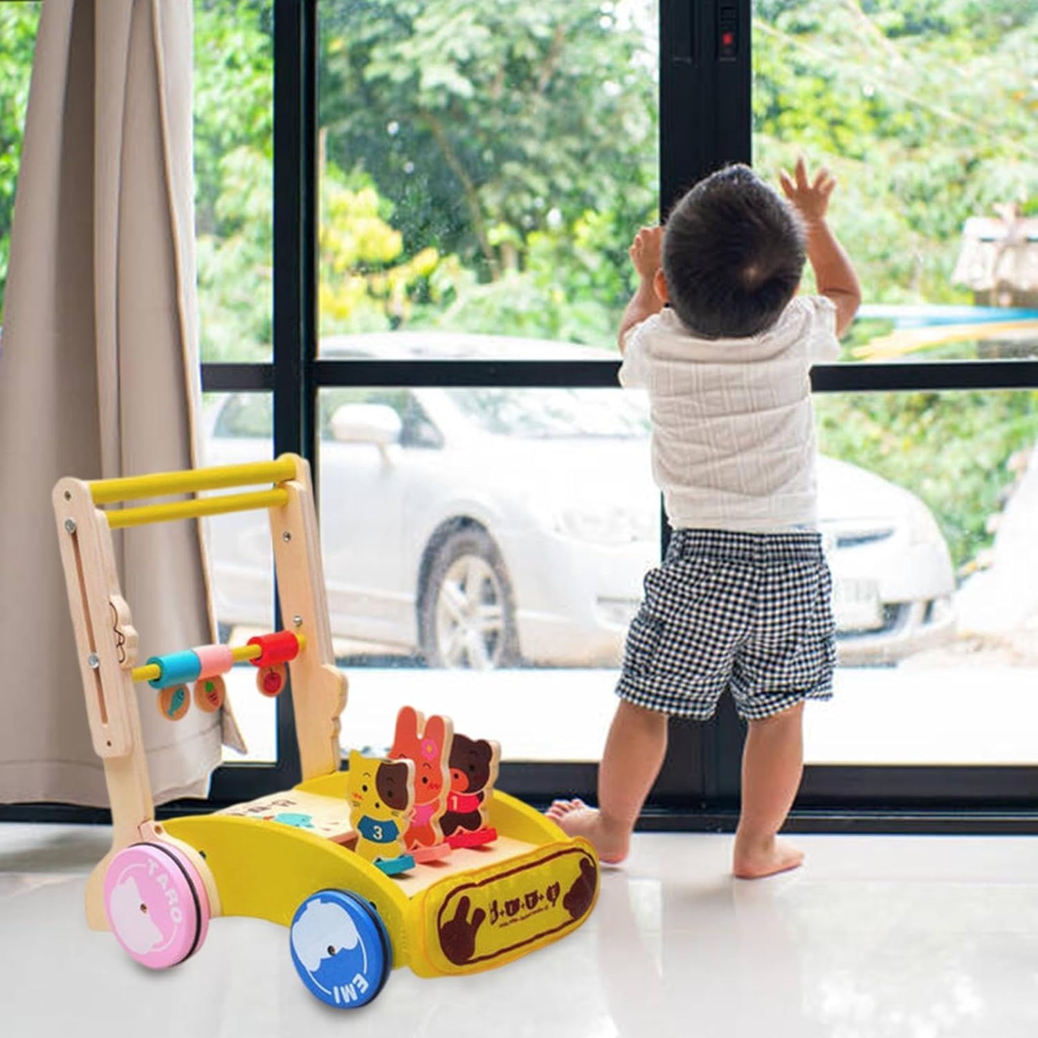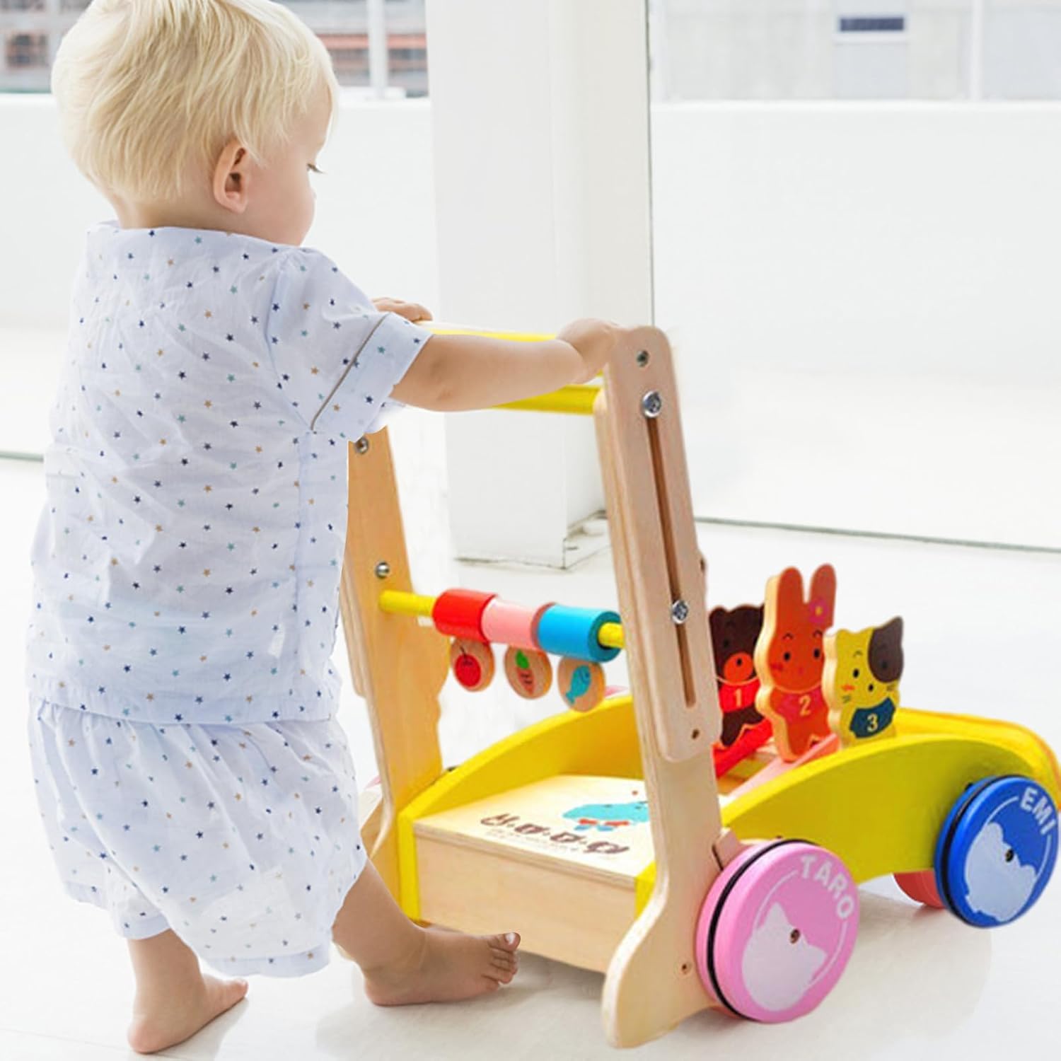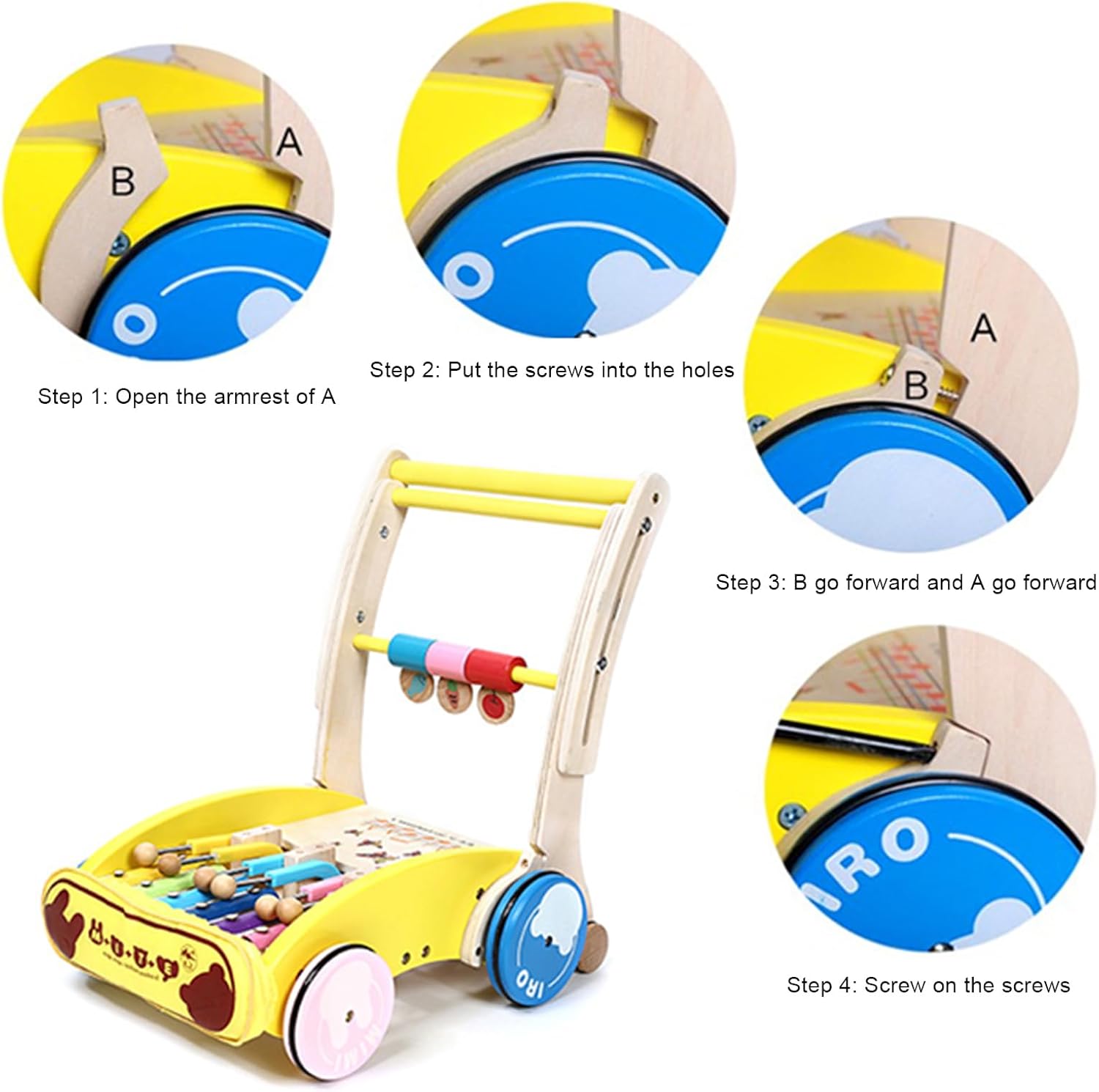 Design dell'anello di gomma: il design dell'anello di gomma non solo fornisce resistenza all'attrito e allo scivolamento per evitare che i bambini cadano, ma impedisce anche l'usura del pavimento. Design allargato del percorso delle ruote: il binario allargato migliora la stabilità del passeggino, rendendo il bambino più sicuro durante il gioco e i genitori possono stare tranquilli. Altezza della barra di spinta regolabile: il nostro deambulatore è molto flessibile e può essere regolato ad un'altezza adeguata in base all'altezza del bambino. La regolazione in altezza è compresa tra 39,9 cm e 58 cm. Facile da installare: devi solo installarlo secondo le istruzioni che ti forniamo e l'operazione è semplice. Il tuo bambino deve essere molto felice di vedere che hai installato un girello così carino per lui. REGALO IDEALE: il nostro girello è un giocattolo ideale che può promuovere l'indipendenza dell'apprendimento. È adatto come regalo di compleanno, regalo di Natale, festa dei bambini e qualsiasi altro regalo di Natale per ragazzi o ragazze.