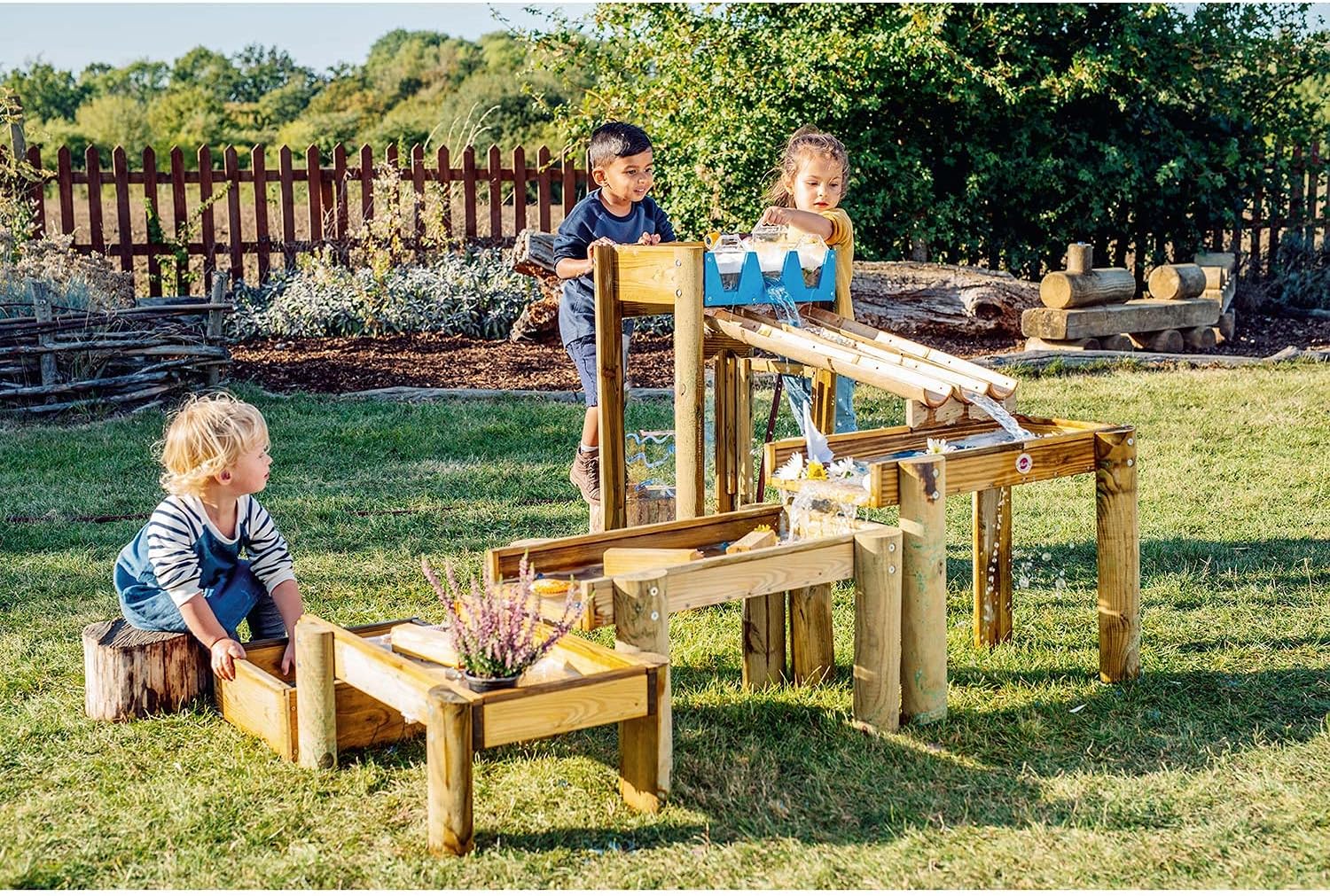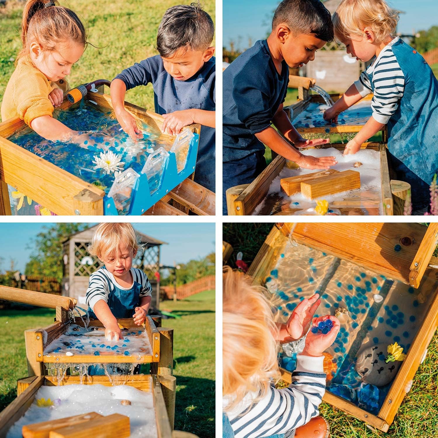 Corso d'acqua a 3 livelli con 5 singoli serbatoi in legno collegati tra loro Scivoli da corsa in bambù naturale I cancelli da corsa d'acqua a tre vie possono essere aperti e chiusi a diverse altezze per regolare il flusso e la direzione dell'acqua; Consenti ai bambini di correre e giocare insieme L'impronta può essere modificata per ottimizzare lo spazio e cambiare il flusso dell'acqua I cancelli trasparenti sono dotati di indicatori di livello che consentono ai bambini di vedere e misurare il cambiamento dei livelli dell'acqua