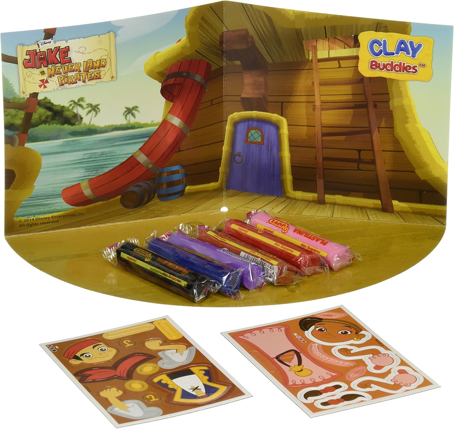 Confezione completa che include 1 libro di attività, 6 barre di pasta da modellare, 2 fogli di cartone pretagliati con i personaggi, velcro e una scena.