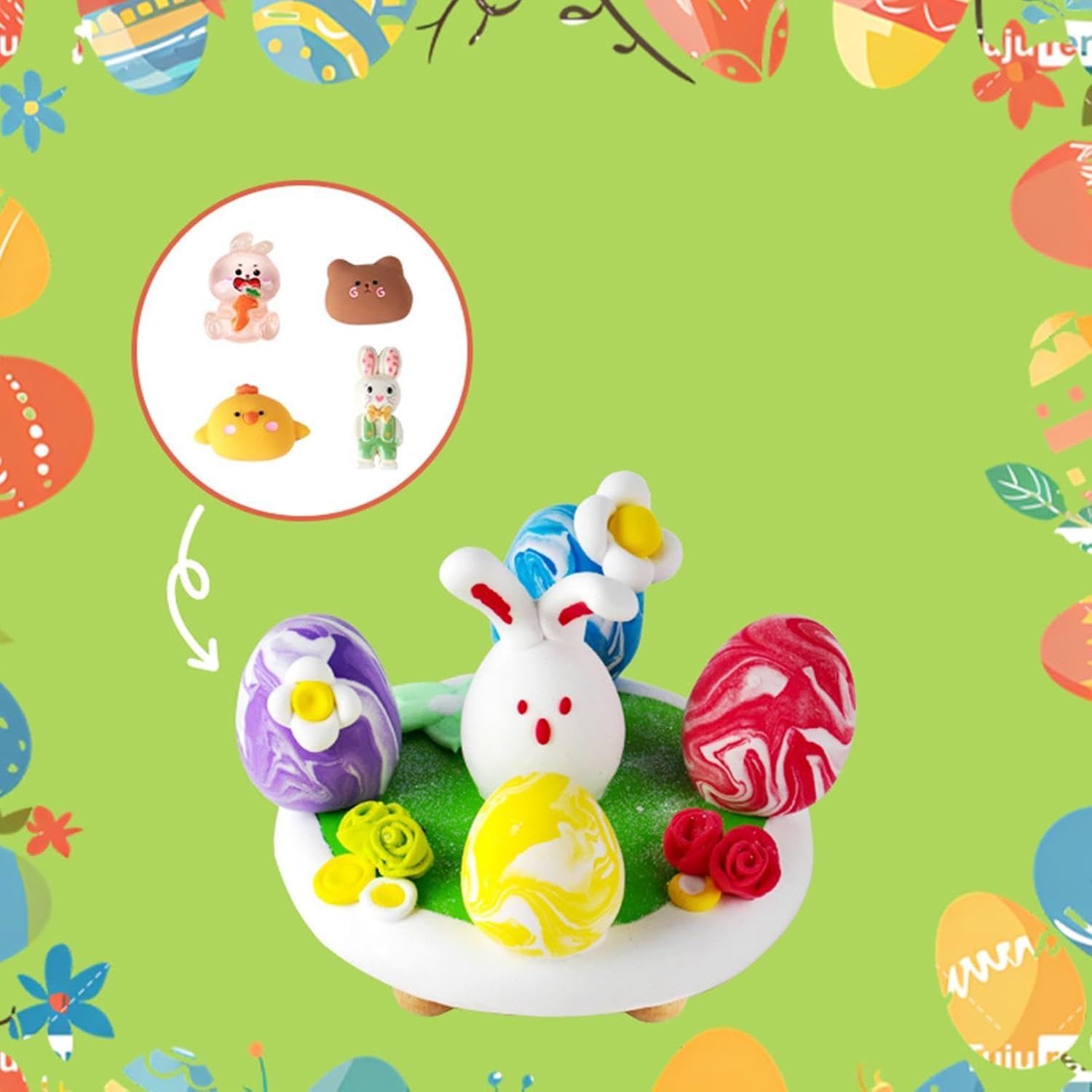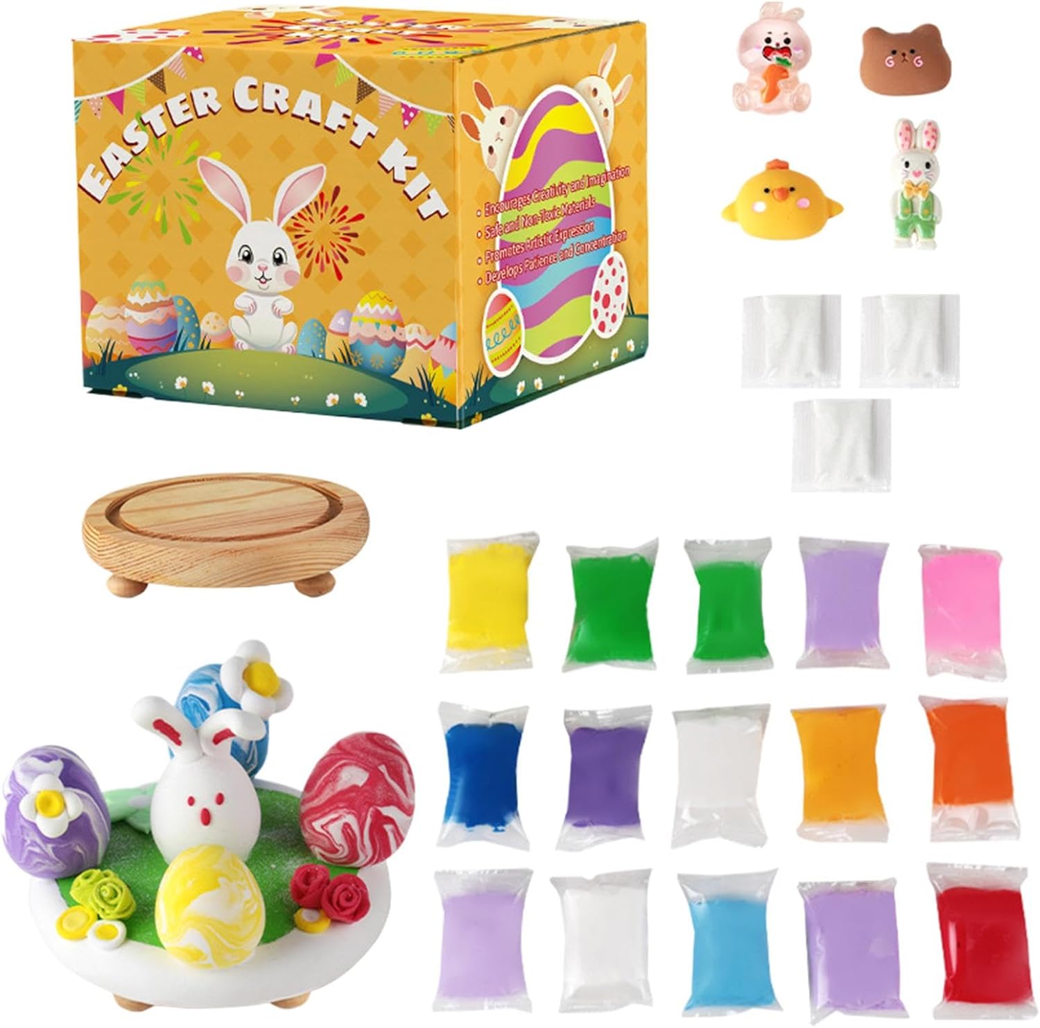 Festeggia la Pasqua in modo creativo: migliora le tue celebrazioni di Pasqua con questo kit argilloso a secco d'aria che consente ai bambini di età pari o superiore a tre o più ornamenti per le uova, aggiungendo un tocco di creatività all'atmosfera festosa Coltiva l'immaginazione: fatti coinvolgere ed espandi orizzonti dei tuoi bambini mentre moano la loro immaginazione e migliorano il pensiero logico con la nostra argilla educativa argillosa per bambini Incoraggia il sociale: da soli o con le persone amate, i bambini possono rilasciare la loro creatività con questo kit argilloso a secco 'aria di Pasqua. Migliora le capacità di genitore-figlio e comunicazione mentre si divertono Set completo: immergersi nella creatività con il nostro kit argilloso a secco 'aria di Easter Egg, un set completo adatto per le riunioni di famiglia e le attività in classe, progettate per facile utilizzo da parte dei principianti Mostra la tua preoccupazione: lascia che tuo figlio impari attraverso il gioco con il nostro kit argilloso a secco 'aria di Pasqua, adatto alla condivisione di gioia con familiari, compagni di classe e amici