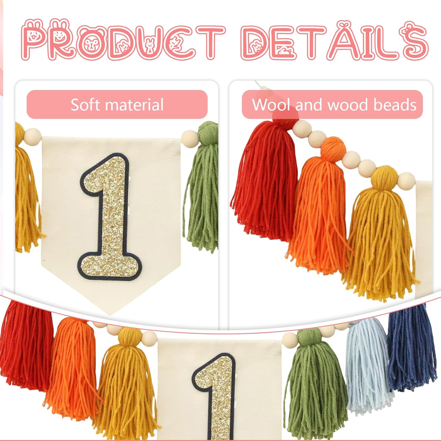 【Decorazioni per il primo compleanno del seggiolone】Usa questo banner con nappe per decorare e abbellire il primo compleanno del tuo bambino; utilizzalo anche come sfondo per foto di dessert o torte insieme alla decorazione per presentare l'intera splendida festa di compleanno 【Materiale eccellente e vantaggioso】Decorazioni per il primo compleanno del bambino con ghirlande di nappe fatte a mano in tessuto; che si tratti del design del prodotto, della scelta dei materiali o del design dei colori, dona alla festa un effetto diverso e unico 【Uso versatile】Può essere utilizzato non solo come decorazione di sfondo per le feste di compleanno dei bambini sul seggiolone, ma anche per baby shower, decorazione della stanza, appendendo il banner al soffitto, alle pareti e alle finestre, nelle camerette del bambino così come alle pareti delle stanze dei bambini, come decorazione del tavolo dei dessert o come oggetto di scena 【Riutilizzabile】Il banner del primo compleanno del seggiolone è facile da usare e da installare, ti fa risparmiare molto tempo, viene fornito con una corda per appenderlo, il banner non è fissato permanentemente, quindi può essere facilmente adattato per adattarsi a tutti i seggioloni, aggiunge una decorazione elegante e bella per accogliere i tuoi ospiti alla festa di compleanno del bambino 【Servizio post-vendita】Se hai domande sui nostri prodotti, puoi chiederci in qualsiasi momento, ti aiuteremo a risolvere il problema