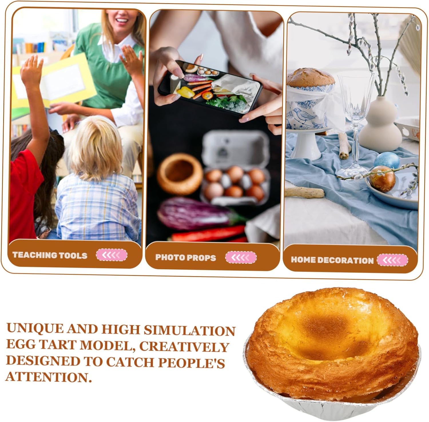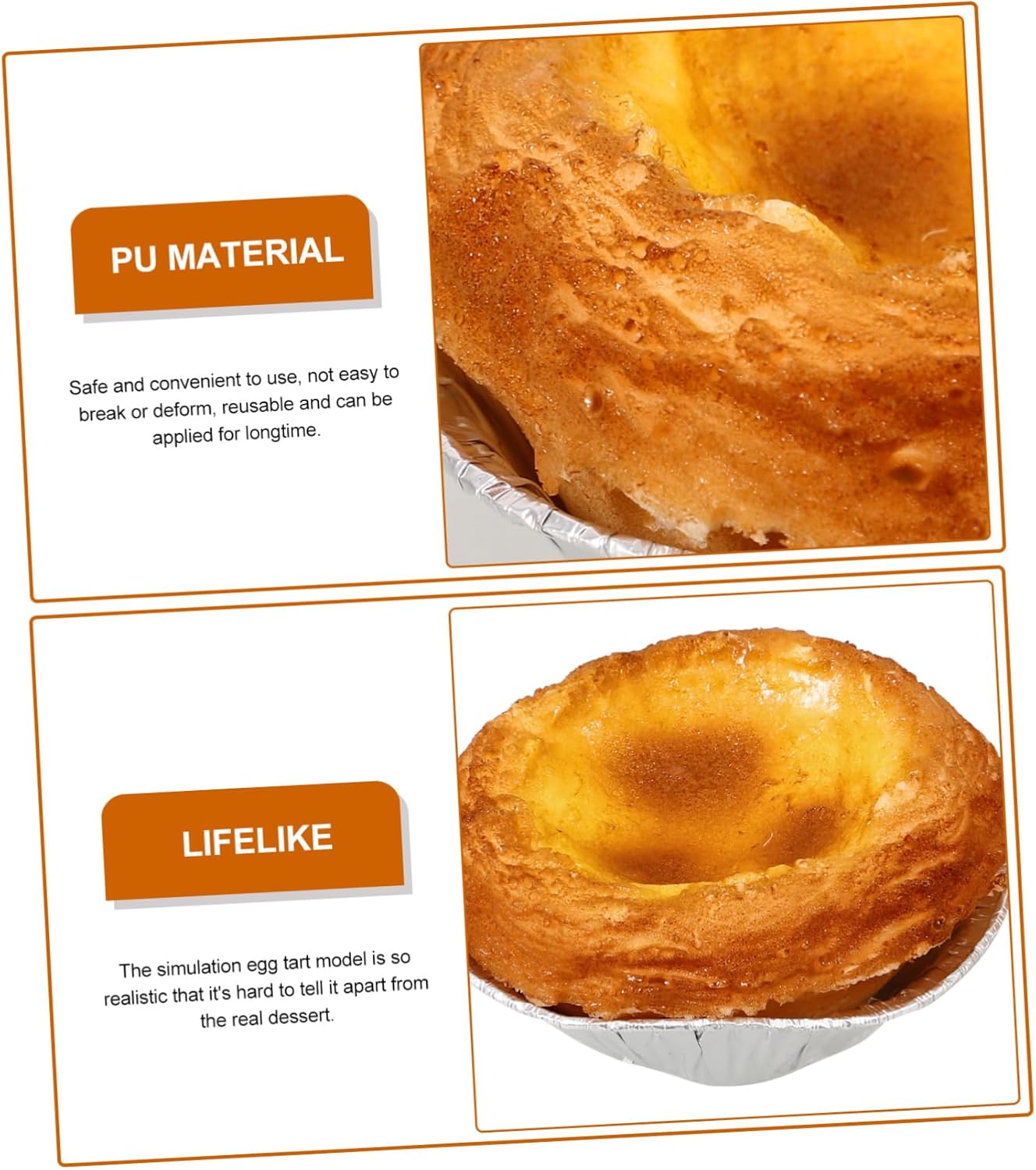 Dessert di simulazione: sicuro e comodo da usare, non facile da rompere o deformare, riutilizzabile e può essere utilizzato a lungo, accessorio per panetteria Decorazione di simulazione di : crostata di uova artificiali realizzata in materiale pu con una consistenza delicata e può essere utilizzata per un lungo periodo, decorazione di dessert per torte artificiali Di crostata all'uovo finta: aumenta l'attrattiva visiva di diverse panetterie con questo accattivante espositore per vetrina per crostata all'uovo, simulazione di crostata all'uovo realistica Torta all'uovo realistica: realistica e vivida, la decorazione della torta all'uovo simulata può essere utilizzata come oggetto di scena per foto, alimentare, articolo facsimile, cibo finto Elegante accessorio fotografico a forma di crostata all'uovo: illumina una credenza o una vetrina con queste decorazioni artificiali a forma di crostata all'uovo, molto decorative e realistiche
