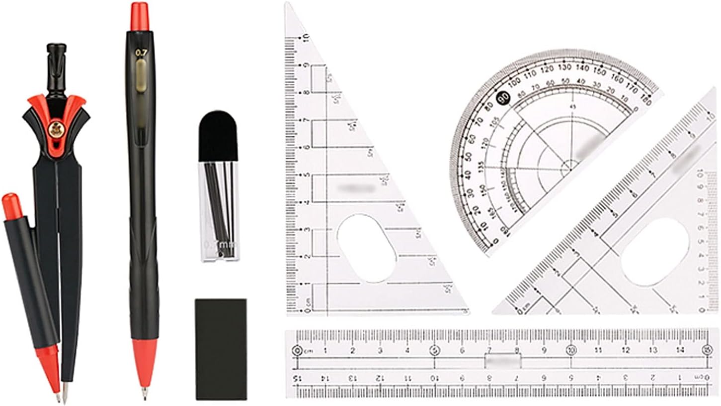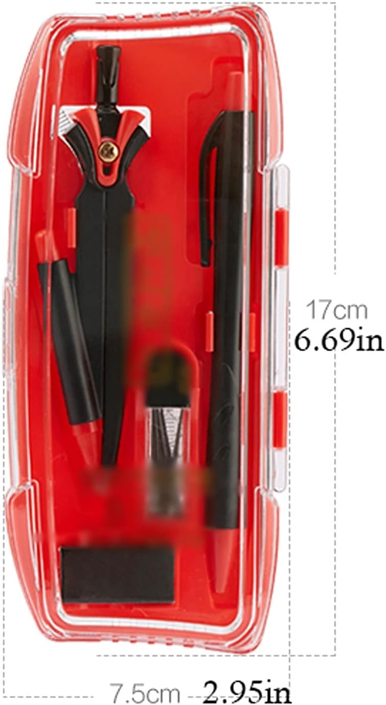 I prodotti includono: compasso, portamine, gomma, nucleo della penna, righello, 2 triangoli (45° e 30°/60°), protreseur. Dimensioni del prodotto: 17*7,5 cm/6,69*2,95 pollici. Materiale del prodotto: materiale in lega di alluminio, materiale PS, nessun odore particolare Caratteristiche del prodotto: 1. Ogni righello è progettato con cura con misurazioni chiare e misurazioni accurate;2. Funzioni complete ed alta realizzabilità;3. Le bussole in metallo sono comode e pratiche e il disegno è preciso. Gamma di prodotti: può essere utilizzato in case, scuole, uffici, ecc. Adatto a insegnanti e studenti, il nostro set di bussole può disegnare qualsiasi forma geometrica.