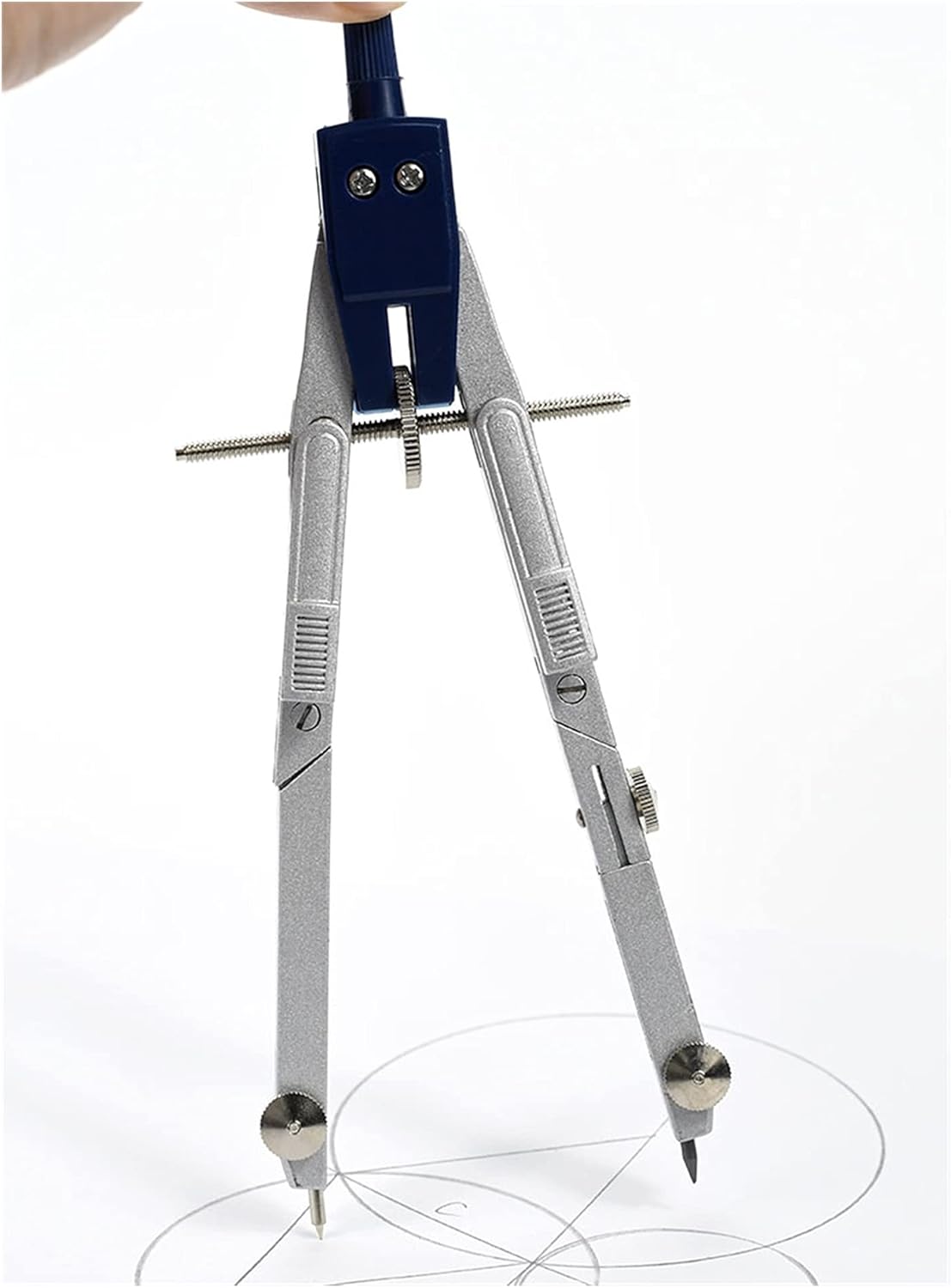 - È di alta qualità e adatto per matematica, geometria, arte, redazione e disegno. - Dimensioni: 16,5 cm. Struttura in metallo resistente, dimensioni compatte, peso leggero. - Realizzato in plastica + metallo, ha una lunga durata. - Adatto a studenti e impiegati per redigere e disegnare. - Questa bussola in metallo di precisione con portapenne è progettata per consentire agli studenti di disegnare durante le lezioni di geometria. Adatto a insegnanti e studenti, il nostro set di compassi può disegnare qualsiasi forma geometrica.