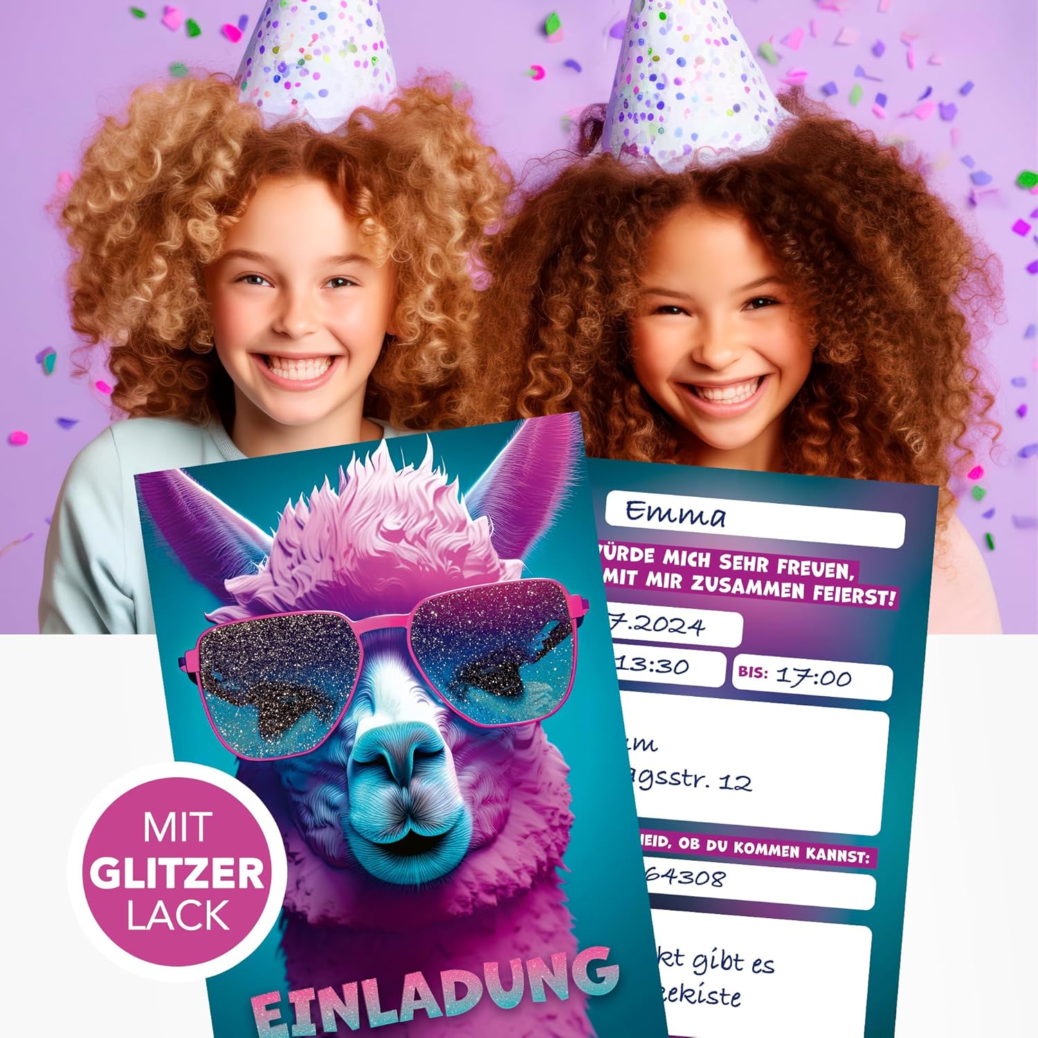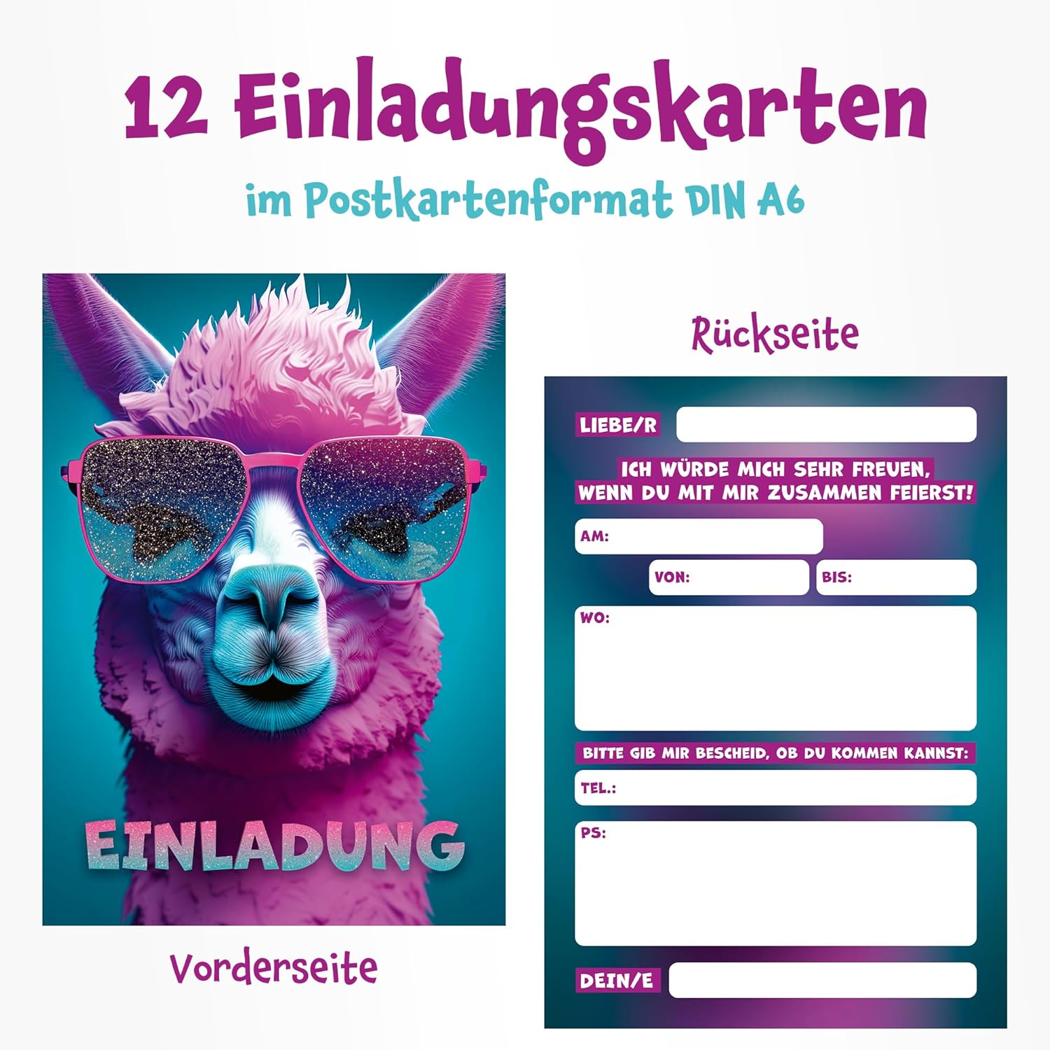 LAMA COOLES – Per tutti gli appassionati di Lama che non riescono a ottenere abbastanza di rosa, rosa e viola. Sorprendete tutti gli ospiti della festa con questi biglietti d'invito impertinenti. Ora la tua festa può salire! Con veri brillantini – Per ancora più stile, abbiamo parzialmente rifinito la parte anteriore dei biglietti di invito con vernice glitterata. SUGGERIMENTO: nel nostro video lo vedi particolarmente bene! Riempimento rapido: compilato in un batter d'occhio attraverso i campi predefiniti. In questo modo è possibile invitare anche le feste più grandi in modo rapido e semplice Biglietti di alta qualità: stampati su carta rigida da 350 g/m². La parte anteriore è parzialmente rifinita con vernice glitterata, mentre il retro rimane scrivibile con tutte le penne comuni Contenuto della confezione: 12 biglietti d'invito con brillantini Lama, di alta qualità, stampati su entrambi i lati in formato cartolina DIN A6 (10,5 cm x 14,8). Stampato in Germania con compensazione CO₂.
