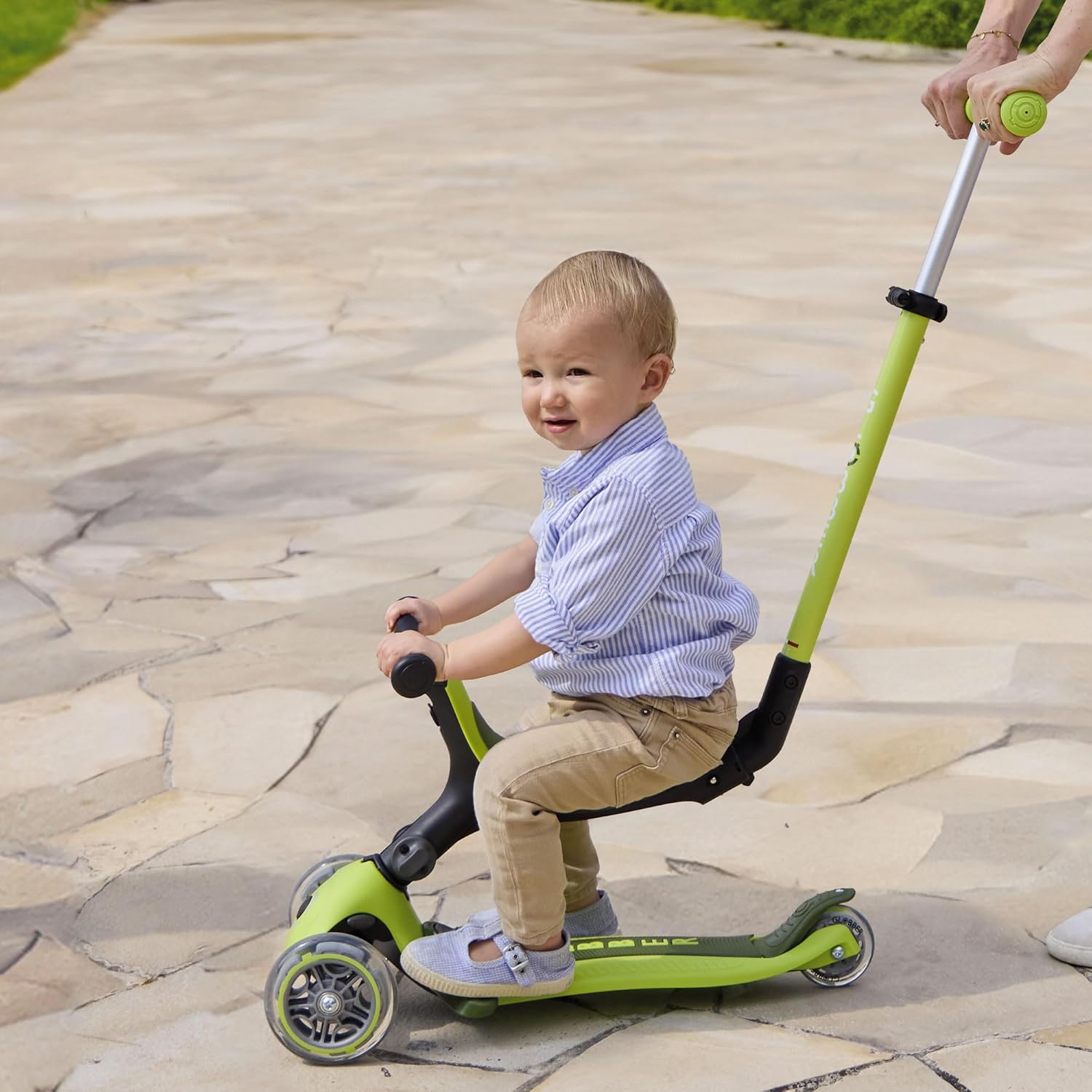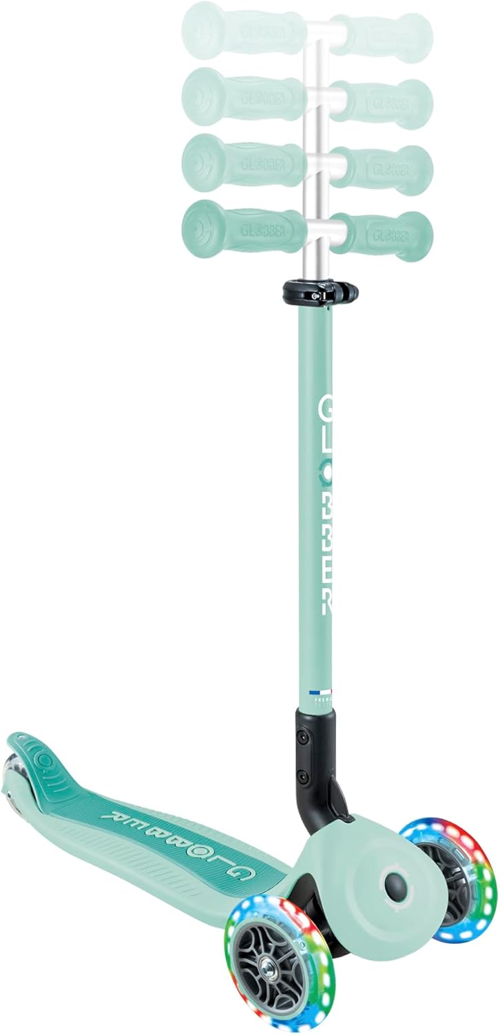 CRESCE CON I GIOVANI | Il monopattino GOUP ACTIVE LIGHTS cresce con i bambini dai 15 mesi ai 6 anni. Permette un apprendimento progressivo e si trasforma facilmente dal seggiolino assistito alla bici senza pedali e poi allo scooter. DESIGN SENZA ATTREZZI AL 100% | Trasforma lo scooter evolutivo in modo semplice e senza attrezzi (design brevettato). Progettato per bambini dai 15 mesi ai 6 anni. La barra di spinta è regolabile su 4 livelli: 80,5/85,5/90,5/95,5 cm (da terra). MONOPATTINO PIEGHEVOLE E ROBUSTO | In modalità monopattino, il manubrio è regolabile su 4 livelli (67,5/72,5/77,5/82,5 cm) e ripiegabile con un semplice pulsante. Il ponte composito supporta un peso di 50 kg in modalità scooter e 20 kg in modalità portapacchi. MONOPATTINO A 3 RUOTE DIVERTENTE E LUMINOSO | Ruote anteriori da 125 mm con luci colorate, alimentate a dinamo (senza batteria) in PU ad alto rimbalzo che assorbe le vibrazioni. Ruota posteriore 80 m. Cuscinetto ABEC 5 MONOPATTINO A 3 RUOTE COMODO | Grazie all'ampia seduta ergonomica, anche i più piccoli possono divertirsi in sella. È regolabile su 2 livelli (25,5 / 29 cm). La barra di spinta è regolabile e più alta, rendendolo più comodo per i genitori.
