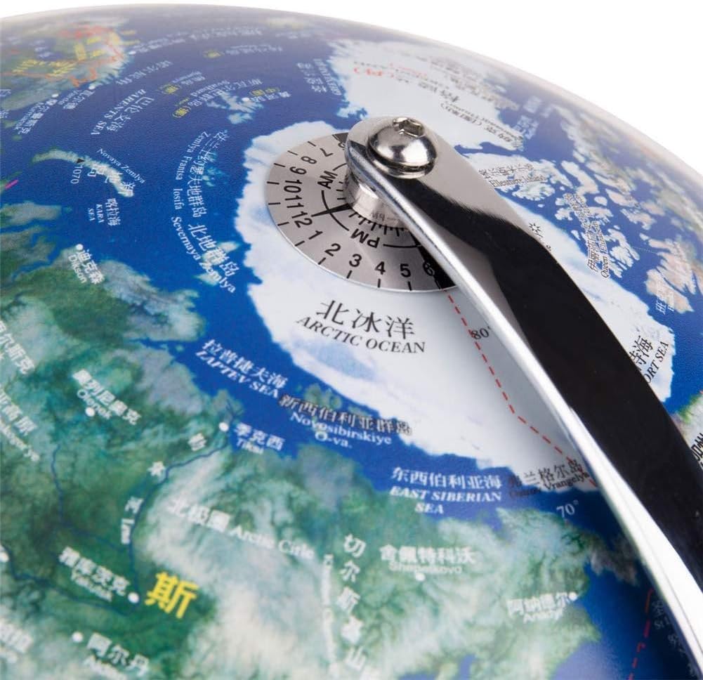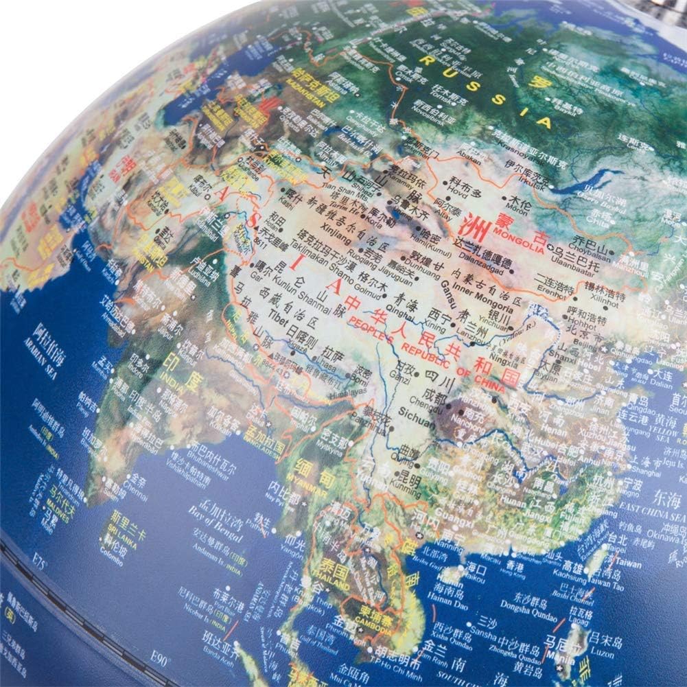 [Dimensioni del mappamondo da tavolo] La dimensione di questo mappamondo per bambini è di 25 cm. Ottimo strumento di apprendimento per casa, ufficio, scuola, soggiorno e camera da letto per navigare nel mondo a portata di mano! [Globo scientifico] Questo mappamondo per adulti è una mappa del mondo per imparare la geografia comodamente con dimensioni potabili. Il mappamondo blu dell'oceano mostra i vivaci oceani blu, i confini regionali colorati, i paesi etichettati, le città, i corpi d'acqua, la longitudine e la latitudine linee chiaramente [Globo da scrivania per bambini]Caratteristiche oceani blu mostrano caratteristiche fisiche sottomarine e sollevate Questo mappamondo con supporto è realizzato in plastica resistente e liscia che può essere ruotato facilmente con le dita. La base in legno di questo mappamondo da scrivania con flanella rimane stabile durante la rotazione e non graffia la superficie della scrivania durante lo spostamento [Globi geografici dettagliati] Questo mappamondo ti offre la mappa completa del mondo per vedere chiaramente tutti i contenuti, gli oceani e i paesi. Diversi paesi stampati con colori diversi su un grande globo sono facili da leggere e riconoscono tutti i piccoli paesi su questi globi del mondo.