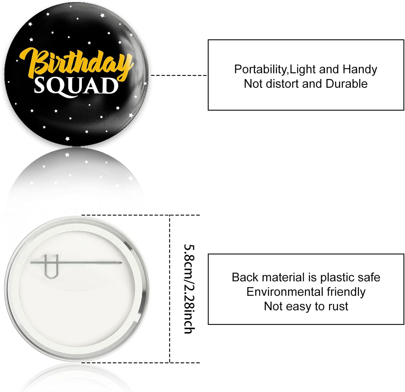 Spille per festa di compleanno: spille per bottoni di buon compleanno da 9 pezzi, quantità sufficiente e colori vivaci sono perfetti per la tua festa di compleanno. Ogni bottone di compleanno misura circa 58 mm di diametro. Materiale di alta qualità: il pulsante del compleanno è realizzato in banda stagnata e plastica di alta qualità, durevole e robusto, non facile da rompere o sbiadire, disponibile per uso continuo. Design carino: progettato con colori vivaci e motivi stampati chiari, che aggiungeranno un tocco in più alla tua festa di compleanno e testimonieranno il tuo momento importante dell'anno. Il miglior regalo per qualsiasi compleanno: questi bottoni sono perfetti per qualsiasi festa di compleanno o anniversario, con una quantità sufficiente da condividere con la famiglia e gli amici, che conquisteranno sicuramente il loro favore. Facile da usare: ogni spilla è dotata di una chiusura facile da aprire in modo da poterla indossare facilmente sulla maglietta, sul cappotto o sul maglione o semplicemente attaccarla allo zaino per una decorazione personalizzata.
