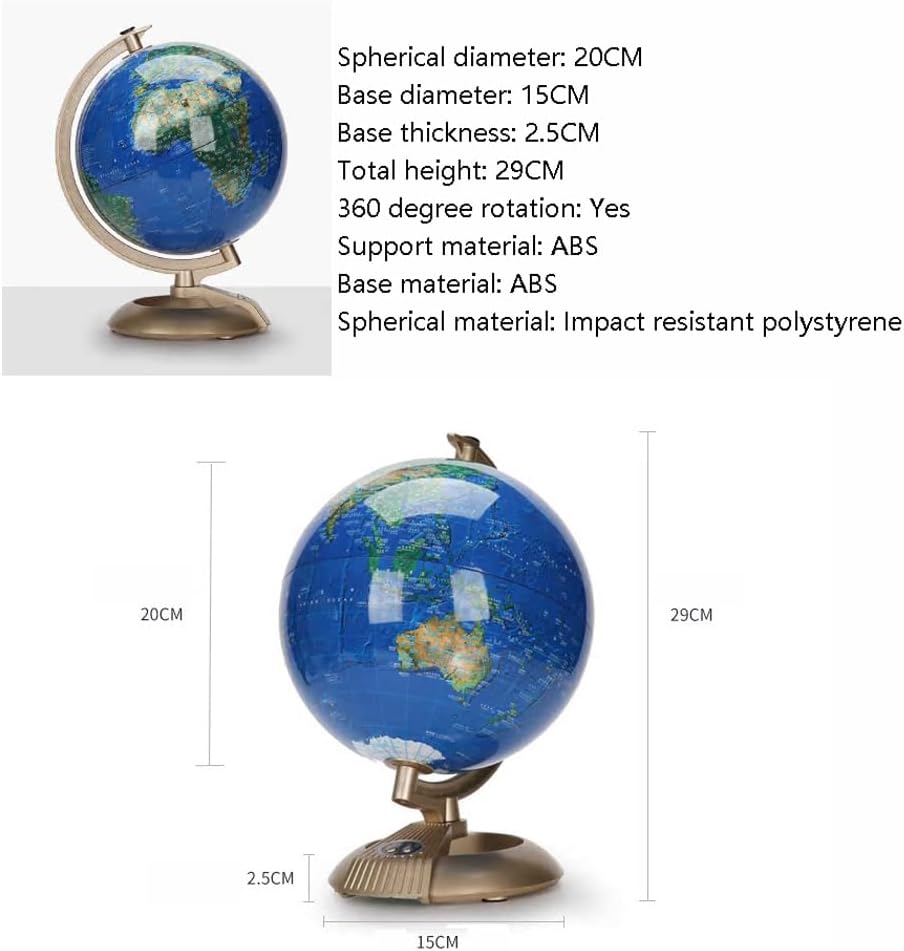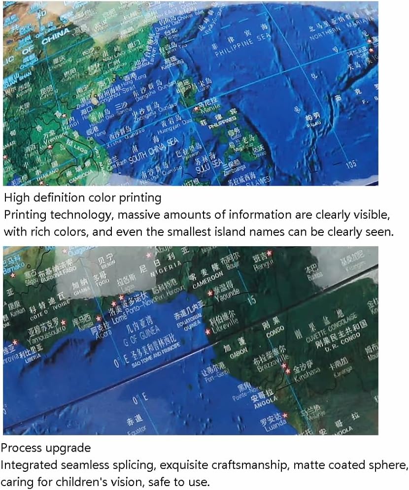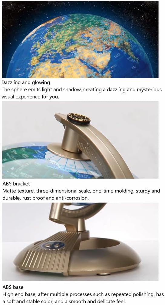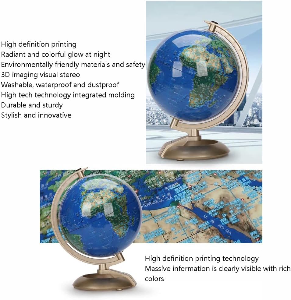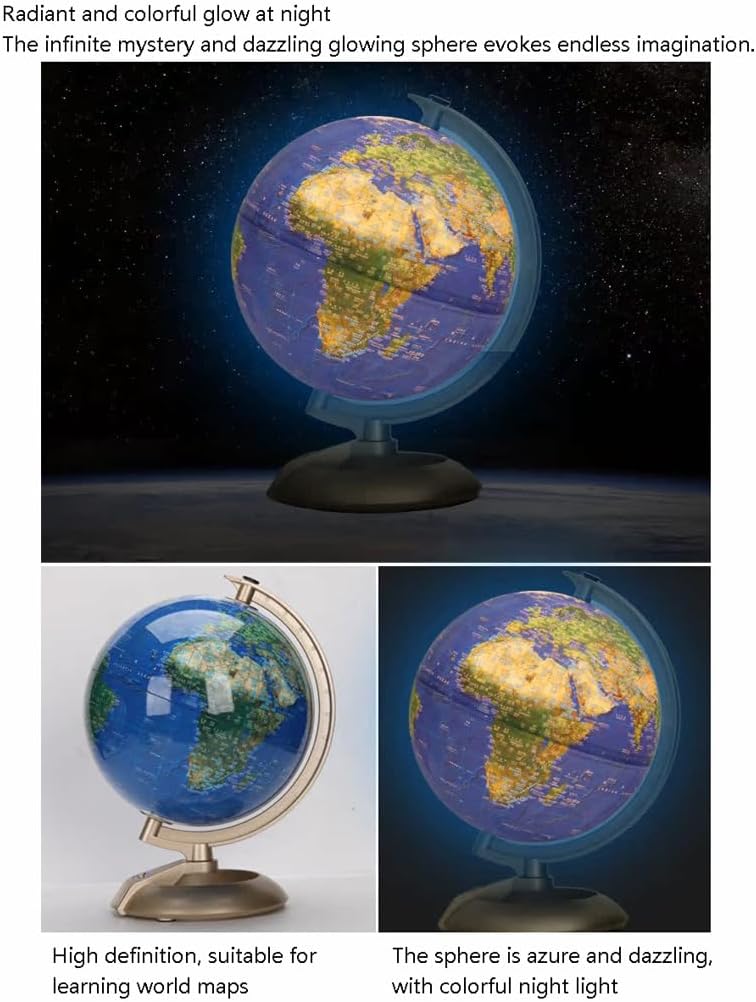 *Un globo vibrante e visivamente accattivante catturerà l'attenzione dei tuoi figli e studenti, rendendo l'apprendimento più piacevole e aggiungendo elementi divertenti e coinvolgenti all'ambiente di apprendimento. *La sfera è realizzata con materiali di alta qualità, con tecnologia aggiornata e integrazione perfetta. La lavorazione artigianale è squisita e la sfera rivestita in opaco garantisce un utilizzo sicuro. Tecnologia di stampa a colori ad alta definizione, con una grande quantità di informazioni chiaramente visibili e colori ricchi. * Bagliore radioso e colorato di notte, la sfera è azzurra e abbagliante e la sfera abbagliante e luminosa evoca un'immaginazione infinita. Abbagliante e luminosa, la sfera emette la propria luce e ombra, creando per te un'esperienza visiva abbagliante e misteriosa. *Staffa in ABS, struttura opaca, scala tridimensionale, stampaggio singolo, robusta e durevole, base in ABS, dopo molteplici processi come lucidatura ripetuta, il colore è morbido e stabile e la sensazione della mano è liscia e delicata. *Il design pulito del globo si fonde perfettamente con vari stili di decorazione della casa o dell'ufficio, moderni, tradizionali o una via di mezzo. Segni chiari, facili da leggere, possono fornire una migliore comprensione della geografia mondiale.