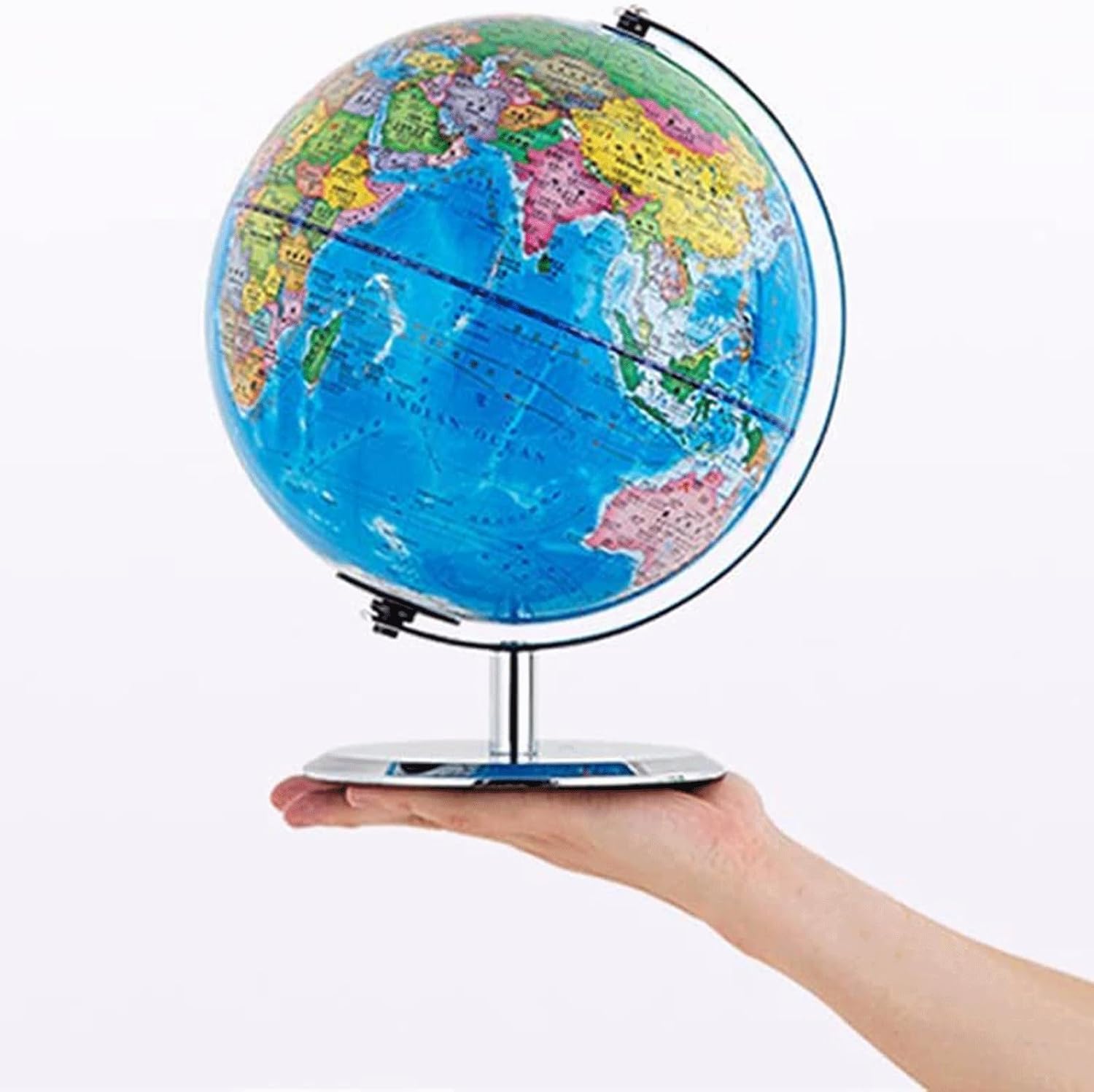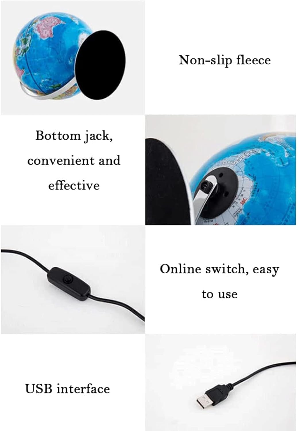 Globo standard avanzato: mappamondo terrestre attuale, dettagliato e accurato. Stampa ad alta definizione, il testo è chiaro e facile da leggere. Considera sia l'aspetto che la funzione. Usa il nostro mappamondo per segnare dove sei stato o dove vuoi andare. Rotazione a 360°: il globo ha un contenuto completo e colori brillanti, facili da ricordare. La stampa della sfera è chiara, la sfera è liscia e rotonda, permettendoti di vedere ogni angolo del mondo in ogni momento Interfaccia USB: può essere alimentata dalla porta USB del computer o può essere collegata a una spina, una varietà di opzioni, facile da usare, facile da usare, con flanella antiscivolo sul fondo, posizionamento stabile Chiari dettagli geografici: visualizza dettagli leggibili con colori vivaci, mostrando i nomi di più paesi, nonché oceani, laghi e altre meraviglie naturali che puoi facilmente individuare. Crea divertimento interattivo: il globo educativo aiuta tuo figlio a esplorare i confini politici, i continenti oceanici e le città del mondo. Rendi divertente l'apprendimento della geografia