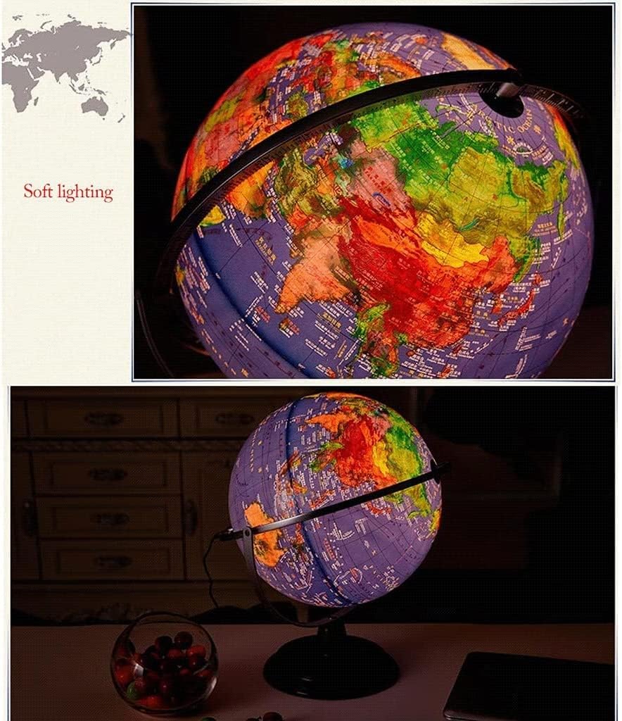 Globo standard avanzato: mappamondo terrestre attuale, dettagliato e accurato. Stampa ad alta definizione, il testo è chiaro e facile da leggere. Considera sia l'aspetto che la funzione. Usa il nostro mappamondo per segnare dove sei stato o dove vuoi andare. Supporto per sfera in scala: utilizzare il supporto per sfera in scala di latitudine e longitudine. La staffa in lega di zinco ha una trama, non cambia colore ed è durevole. Effetto sferico: rilievo tridimensionale, con un rigonfiamento di circa 2 mm. Rotazione universale di 720°, scrittura chiara e connessione perfetta. Design dell'orario internazionale: è conveniente controllare il fuso orario, design molto interessante. Base in legno importata, magnifica, bella e pratica. Divertente ed educativo: può allenare la creatività, l'intuizione e la coordinazione occhio-mano di tuo figlio. Questo bellissimo globo può anche incoraggiare i bambini curiosi a esplorare il mondo della scienza, leggere e conoscere i fatti geografici e storici della terra