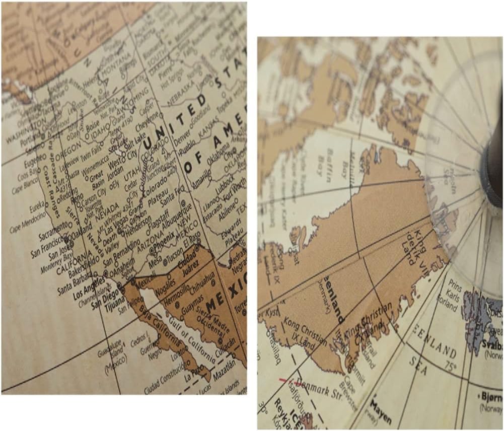 Usa questo mappamondo per ampliare la tua prospettiva e aumentare la tua conoscenza della geografia terrestre! Offre un modo divertente e conveniente per imparare la geografia a casa, in classe o in ufficio. Usalo come un pezzo da esposizione accattivante su una libreria o una scrivania. Globo decorativo: l'ultimo globo politico terrestre e il classico globo oceanico antico con un diametro di 8,4 pollici. Il globo può essere ruotato da sinistra a destra e da destra a sinistra per visualizzare qualsiasi area della Terra. Classico stile retrò, tutti adesivi fatti a mano, staffa in metallo, base in legno massello, stampa trasparente, motivo classico. Promemoria: la base è realizzata a mano in stile antico, il colore della superficie di ciascun modello è leggermente diverso; Il globo adesivo fatto a mano presenterà disallineamento e segni manuali sull'interfaccia, il che è inevitabile nell'artigianato!!! Mappamondo antico Decorazione del globo Globo da tavolo Globo terrestre rotante Globo geografico Base in legno Stile vintage retrò Adatto a tutte le decorazioni domestiche, soggiorno, ufficio, studio, bagno e comodino ecc.