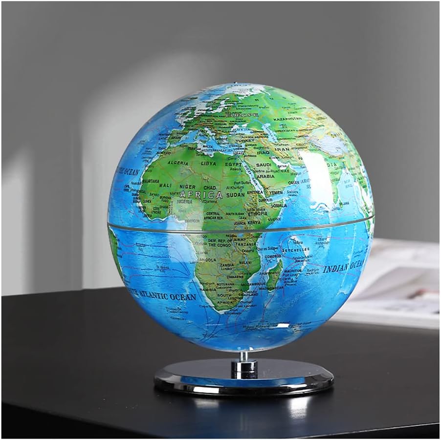 Decorazione versatile: i globi sono ideali per salotti, aule, tavoli e altro ancora, rendendoli un regalo perfetto per bambini, Natale, eventi di amici e nuove aperture di uffici o studi. Bilingue ed educativo: presenta l'etichettatura cinese e inglese in linea con gli standard internazionali, aumentando l'interesse per l'inglese e la geografia con informazioni dettagliate su paesi, capitali, confini e acque. Costruzione durevole: costruito con un telaio e una base in metallo di alta qualità, oltre a un fondo in velluto antiscivolo per garantire stabilità e resistenza ai graffi su varie superfici per un uso duraturo. Caratteristica illuminata: dotata di una luce LED integrata, che consente una facile visualizzazione al buio, funge da luce notturna e aiuta nell'esplorazione geografica e nell'apprendimento. Strumento di apprendimento avanzato: fornisce dati geografici dettagliati, rendendo l'istruzione più facile e coinvolgente, con la possibilità di illuminare per l'uso notturno o come elemento decorativo.