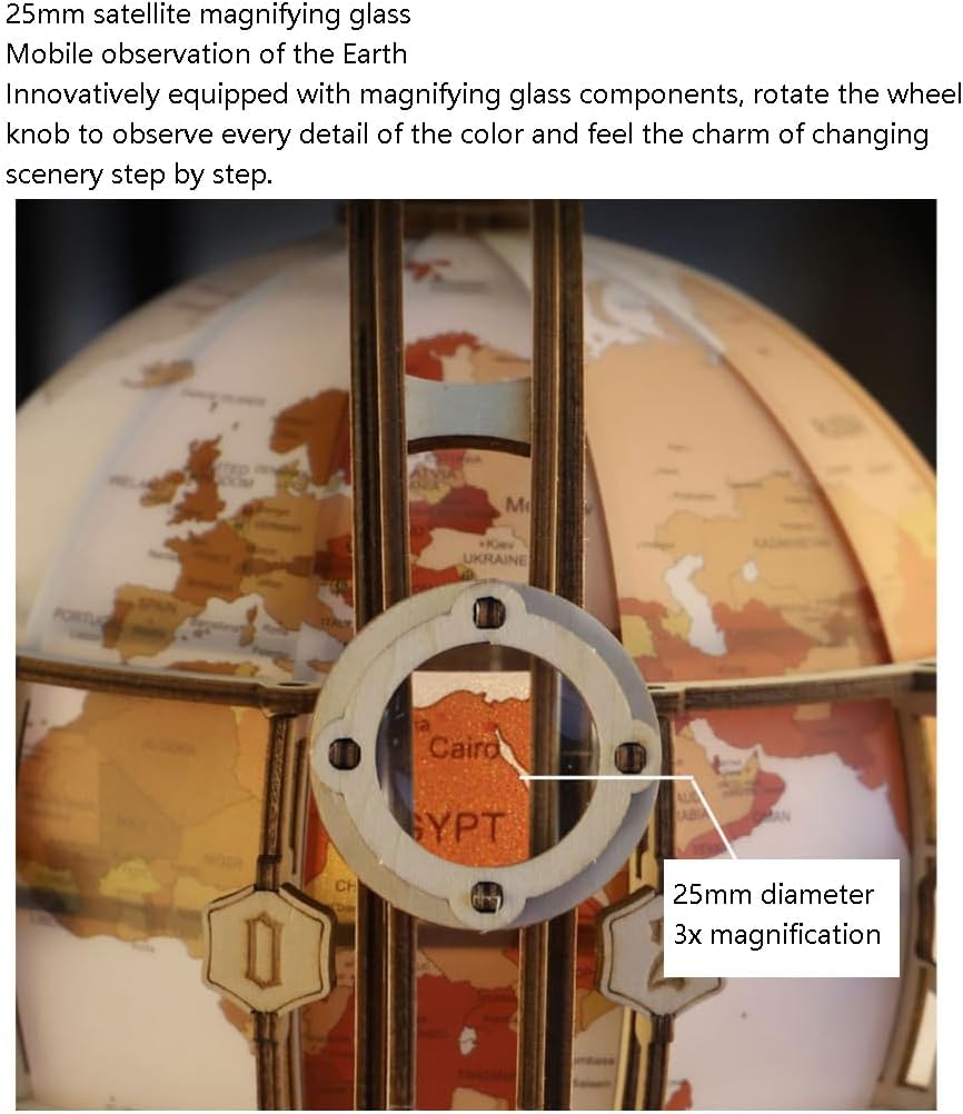 *Un globo vibrante e visivamente accattivante catturerà l'attenzione dei tuoi figli e studenti, rendendo l'apprendimento più piacevole e aggiungendo elementi divertenti e coinvolgenti all'ambiente di apprendimento. *La sfera è realizzata in materiale PP, con tecnologia di fustellatura, etichettatura inglese completa, tecnologia a mortasa e tenone, assemblaggio fisico completamente strutturato, struttura di rotazione meccanica e vista a 360° dell'intera Terra. * Luce notturna a luce soffusa, luce notturna di colore caldo giallo fumé, perline LED integrate di piccolo volume, luminosità stabile, basso consumo energetico, lunga durata, offrendo un'esperienza elegante. * Lente d'ingrandimento satellitare da 25 mm, osservazione mobile della Terra, dotata in modo innovativo di componenti di lente d'ingrandimento, rotazione della manopola della ruota d'onda, osservazione di ogni dettaglio del colore e esperienza del fascino di cambiare scenario passo dopo passo. *Riproduzione di antichi classici europei e supporto dell'estetica classica, sia essa moderna, tradizionale o una via di mezzo. Segni chiari, facili da leggere, possono fornire una migliore comprensione della geografia mondiale.