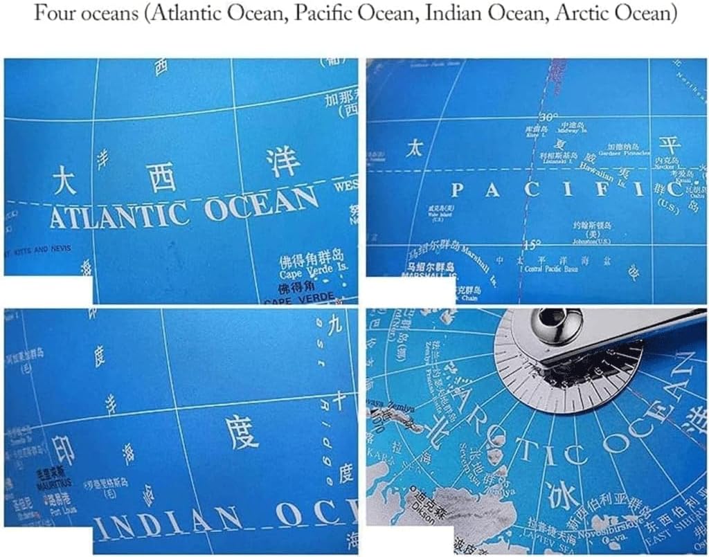 1: Questo mappamondo da 12" fatto a mano e facile da usare è esattamente quello che stavi cercando e ti offrirà un divertimento illimitato a casa o in classe. 2:3 diversi diametri: 20 cm/8 pollici, 25 cm/10 pollici, 32 cm/13 pollici, mappamondi dettagliati con decorazioni in argento lucido, che aggiungono stile di design ai design tradizionali. 3: La base in metallo e la flanella sono antiscivolo, resistenti e non facili da mantenere stabili, sono flessibili da ruotare, non tagliano le mani, non inceppano la palla, struttura in metallo, bella atmosfera. 4: Dopo l'aggiornamento della base: è realizzata in materiale metallico e utilizza un processo di verniciatura a forno per metallo per far sì che la staffa e la base abbiano un colore brillante e bello e non sbiadiscano e non si deformino dopo un uso a lungo termine. 5:Ideale per insegnare ai bambini in modo divertente e interattivo la geografia del nostro meraviglioso pianeta Terra.