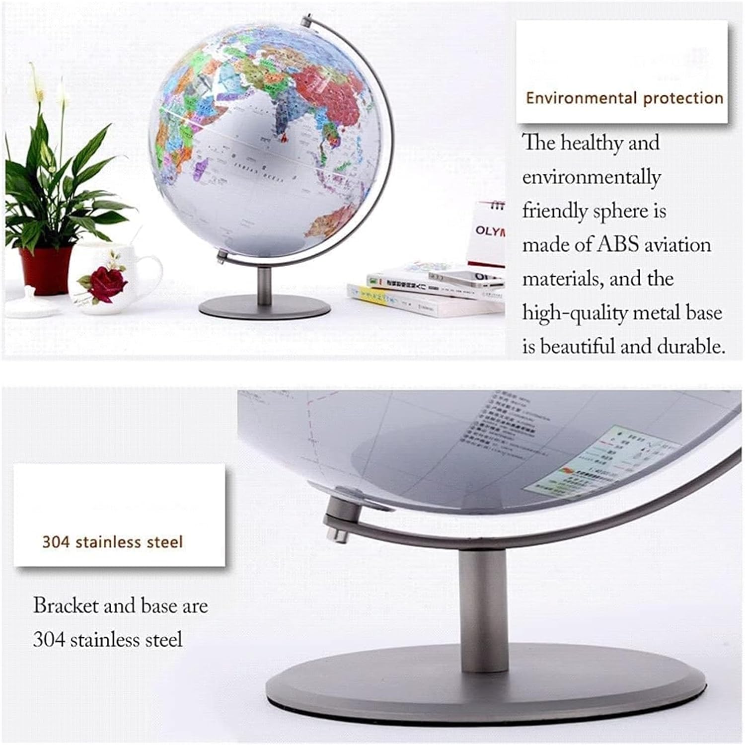 I mappamondi da tavolo aggiungono un tocco senza tempo di raffinatezza e curiosità intellettuale a qualsiasi arredamento domestico o d'ufficio. La sfera è in ABS ecologico e la staffa è in acciaio inossidabile 304. Staffa e base in acciaio inossidabile 304, staffa in acciaio inossidabile satinato, delicata e stabile, senza scolorimento. Montata su meridiano completo e plinto con finitura argentata. Ecco un globo assemblato. Progettato per gli studenti, affidabile e durevole, semimeridiano e base solidi, rotazione della terra senza soluzione di continuità Circa 10.000 informazioni amministrative e geografiche, sia in cinese che in inglese, arricchiranno la tua vita.